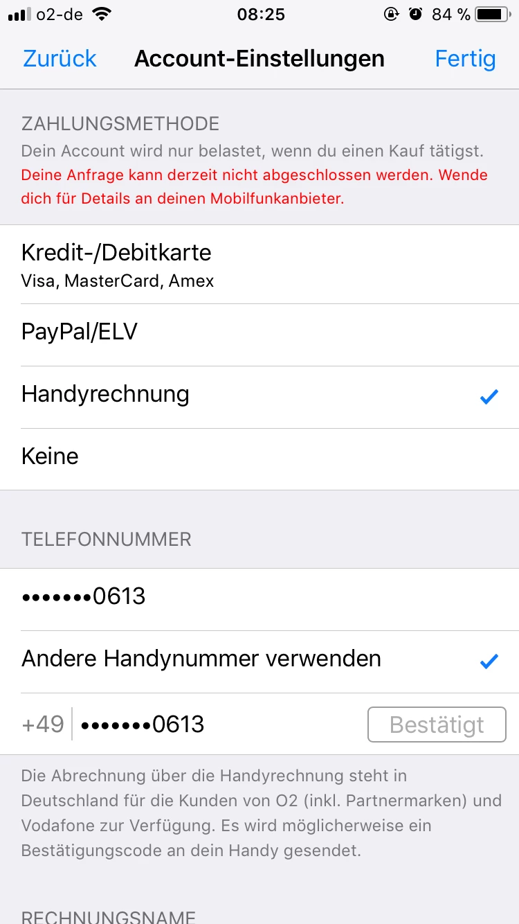 Und was hat der Support gesagt, als du sagtest, dass auch eine Bezahlung mit deinem iTunes Guthaben nicht möglich sei? Bestimmt nicht, dass du die o2 Kundenbetreuung anrufen sollst.
