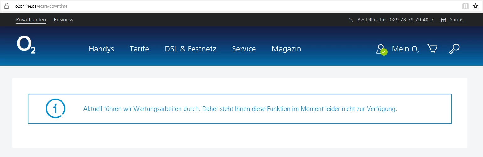 Weil o2 Wartungsarbeiten durchführt?