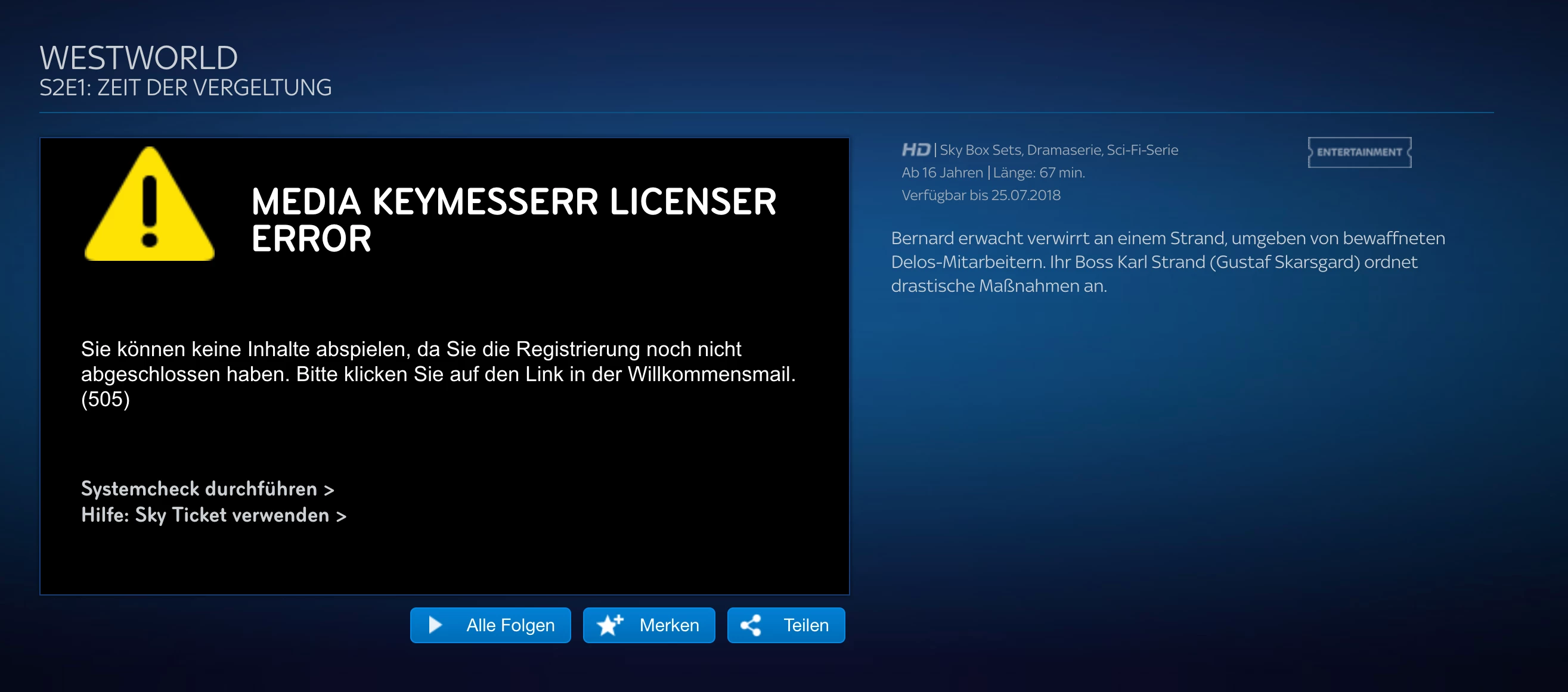 Laufen die 3 Checks erfolgreich durch, aber statt dass die gewählte Episode startet erhalte ich