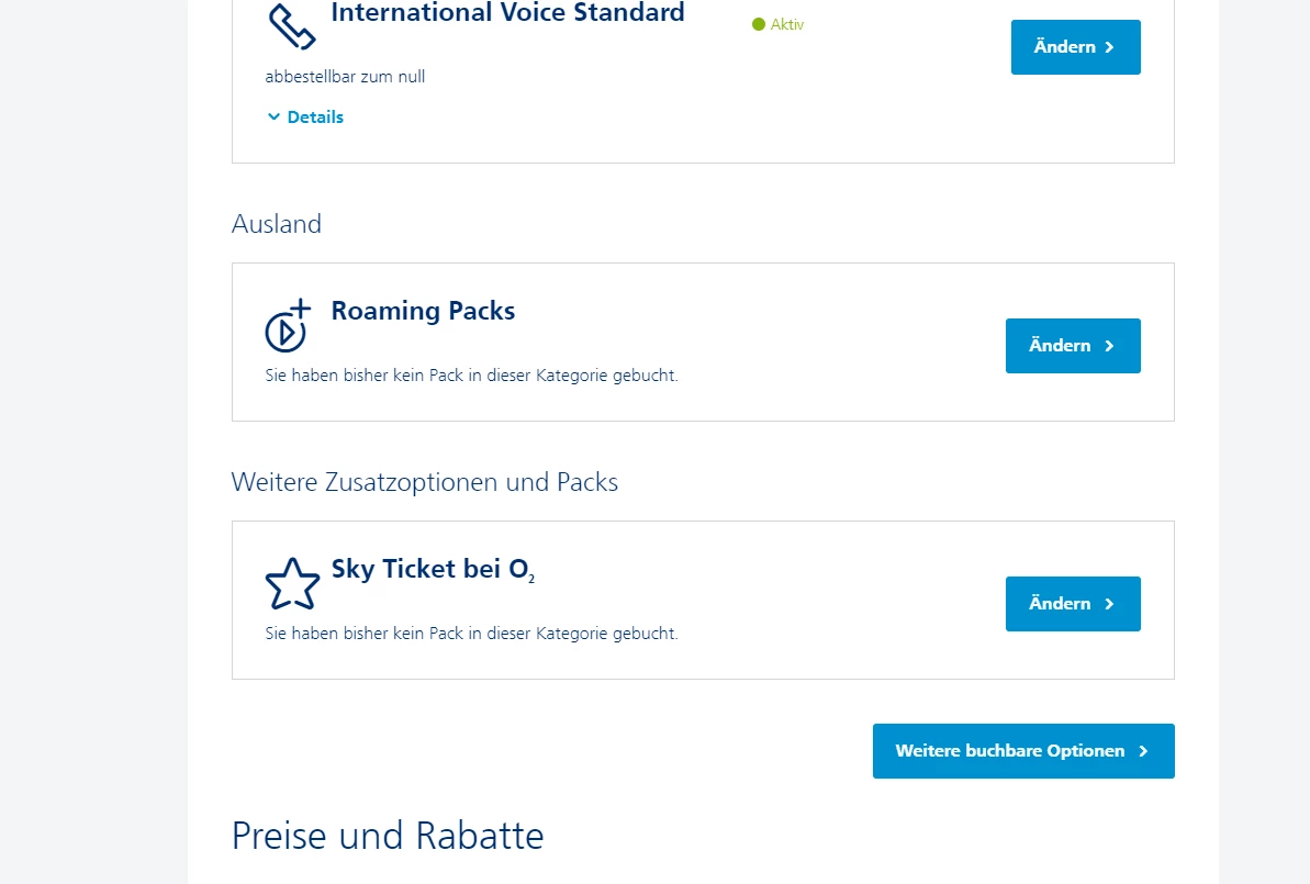 Ich versuche jetzt schon seit Anfang Januar o2 über jegliche Wege o2 zu Kontaktieren und sie darauf hinzu weisen das überall mein "Tarif" falsch hinterlegt ist meiner Meinung. Es ist ein kleines aber Feines Problem. Laut meinem o2 Bereich (Screenshot) habe ich ein International Voice Paket Aktiv welches laut Support nicht aktiv ist bzw. ich ein Roaming Paket hätte. Jedes mal, wenn ich darauf hinweise das es mir nicht um den Vertragsbestandteil geht sondern das mir einfach alles so Konform angezeigt werden sollte wie es ist, wird mir gesagt das dies nicht sein und man da nichts machen könnte und es wäre definitiv kein Technischer Fehler sofern man dies überhaupt so nennen kann. Ich finde, dies wirkt in dem Fall irreführend und suggeriert wenn man nicht mit dem Support in Kontakt tritt, das man kein Roaming-Paket hätte und zwangsweise was buchen muss. Ich habe mal zum Test ein Roaming-Paket buchen wollen dann kommt immer die Meldung "Es ist ein Fehler aufgetreten, bitte wenden sie sich an den Kundenservice". Vielleicht mag sich mal jemand über diesem Weg sich dem Problem annehmen. Dadurch funktioniert bei mir auch überhaupt nicht die Funktion in der App "Preise im Ausland" wie man in einem dieser Screenshots sehen kann diese ich als sehr Praktisch ansehe. Ich weiß auch nicht mehr genau welche andere Option ich buchen wollte aber aufjedenfall kam dann auch immer eine Fehlermeldung das dies zur Zeit nicht möglich wäre.