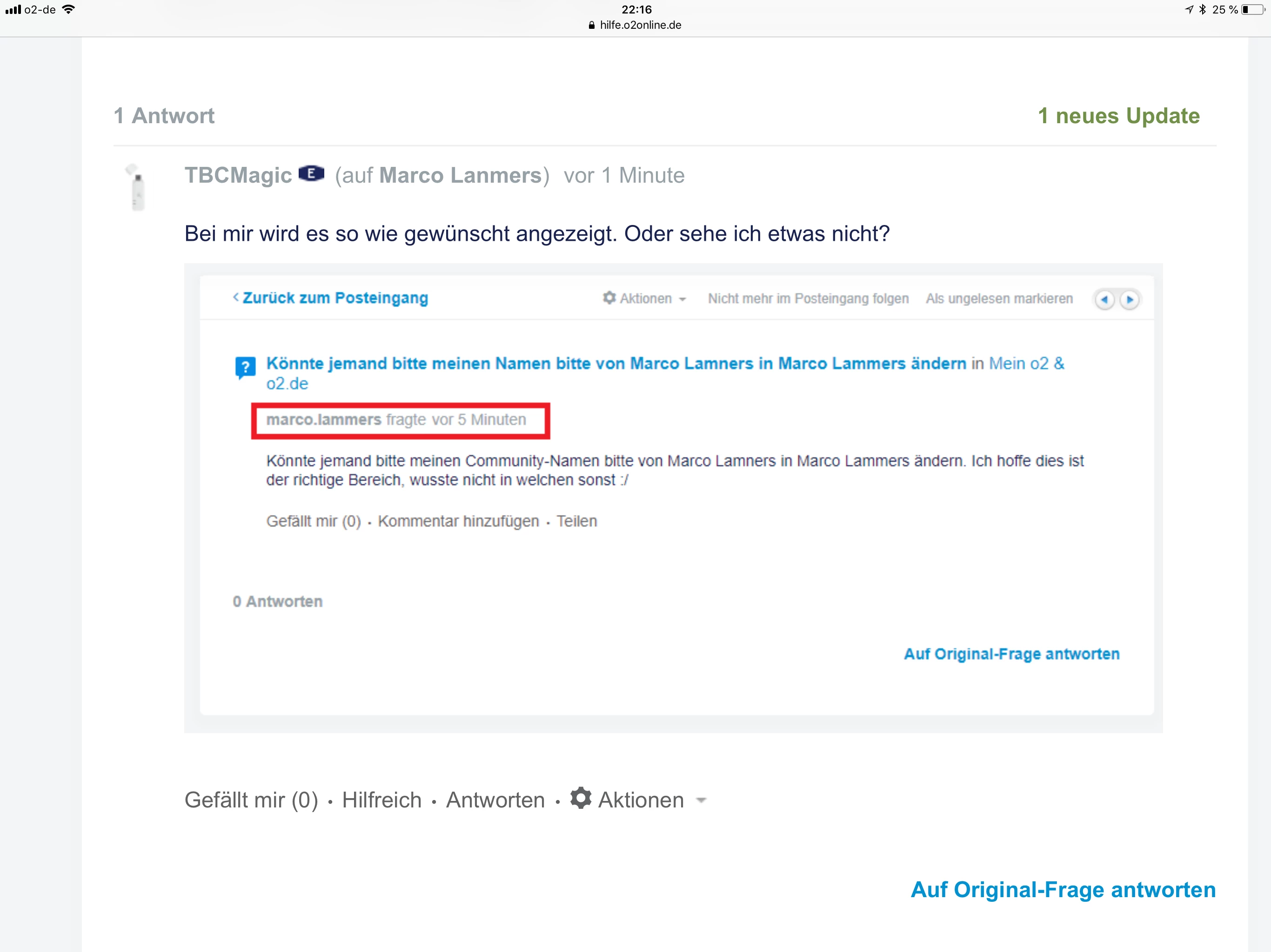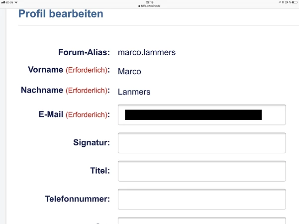 Könnte jemand bitte meinen Namen bitte von Marco Lamners in Marco Lammers ändernin Mein o2 & o2.de