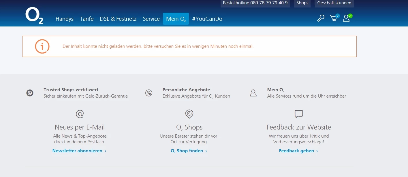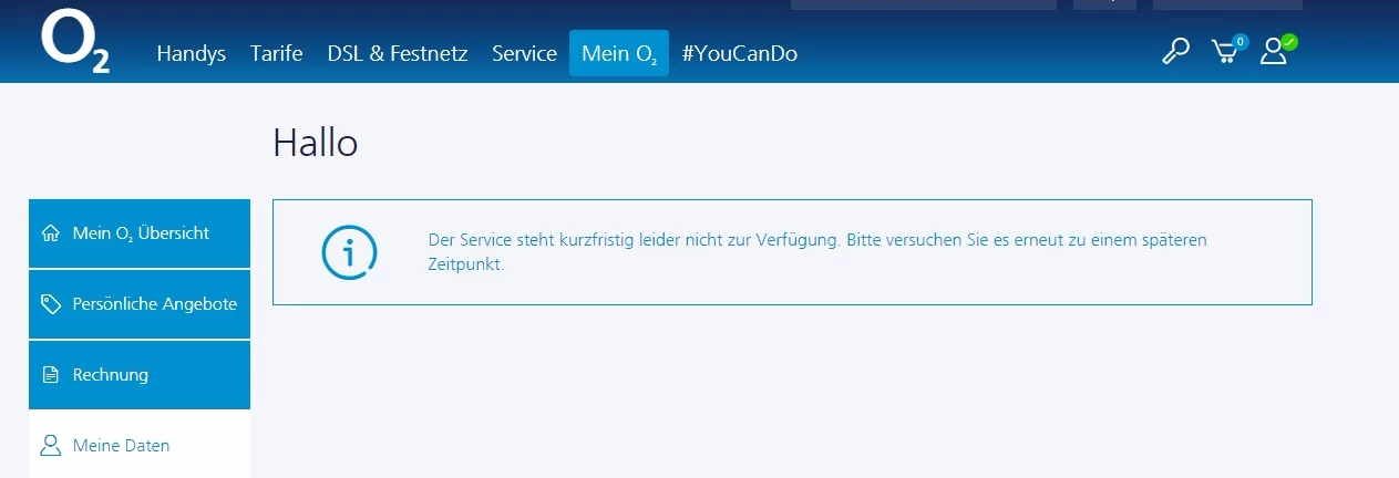 "Mein o2"-Bereich defekt