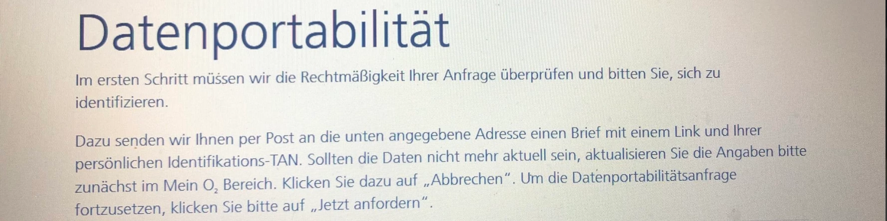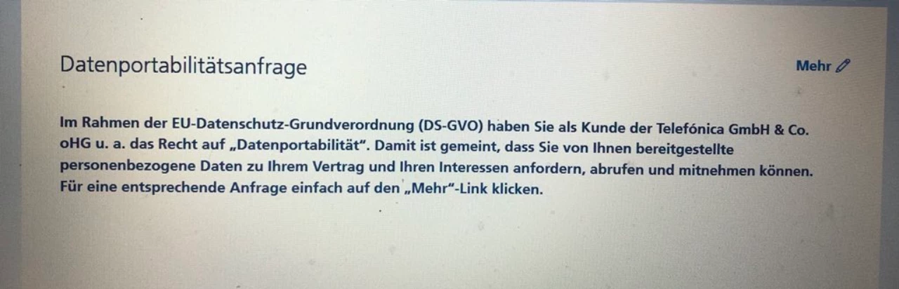 Mein o2 Einstellungen Datenportabilitätsanfrage