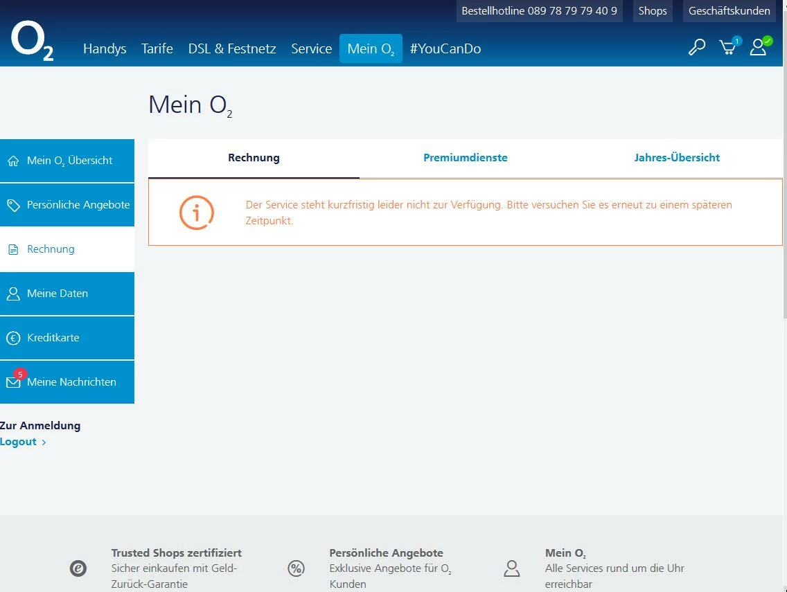 mein o2 Kundencenter immer noch nicht erreichbar!!!