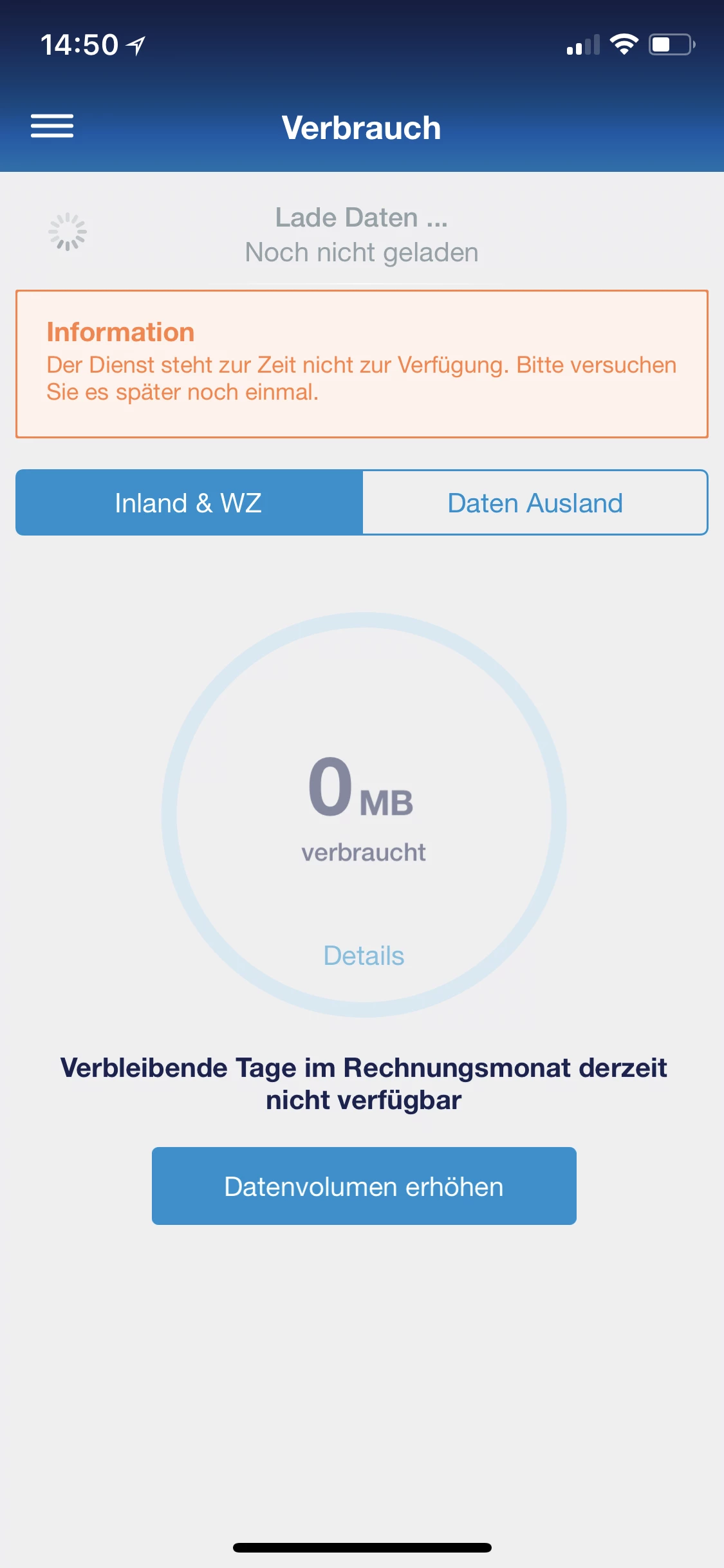 Die o2 App zeigt nun auch alle Daten richtig an, wie auch die Abfrage über *140# funktioniert.