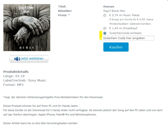 Hallo! Ich wollte am Donnerstag eigentlich nur den Gratissong downloaden und hab aus Versehen das Music Paket gebucht. Gekündigt habe ich mittlerweile, aber gewollt war das Abo nicht. Vielen Dank!