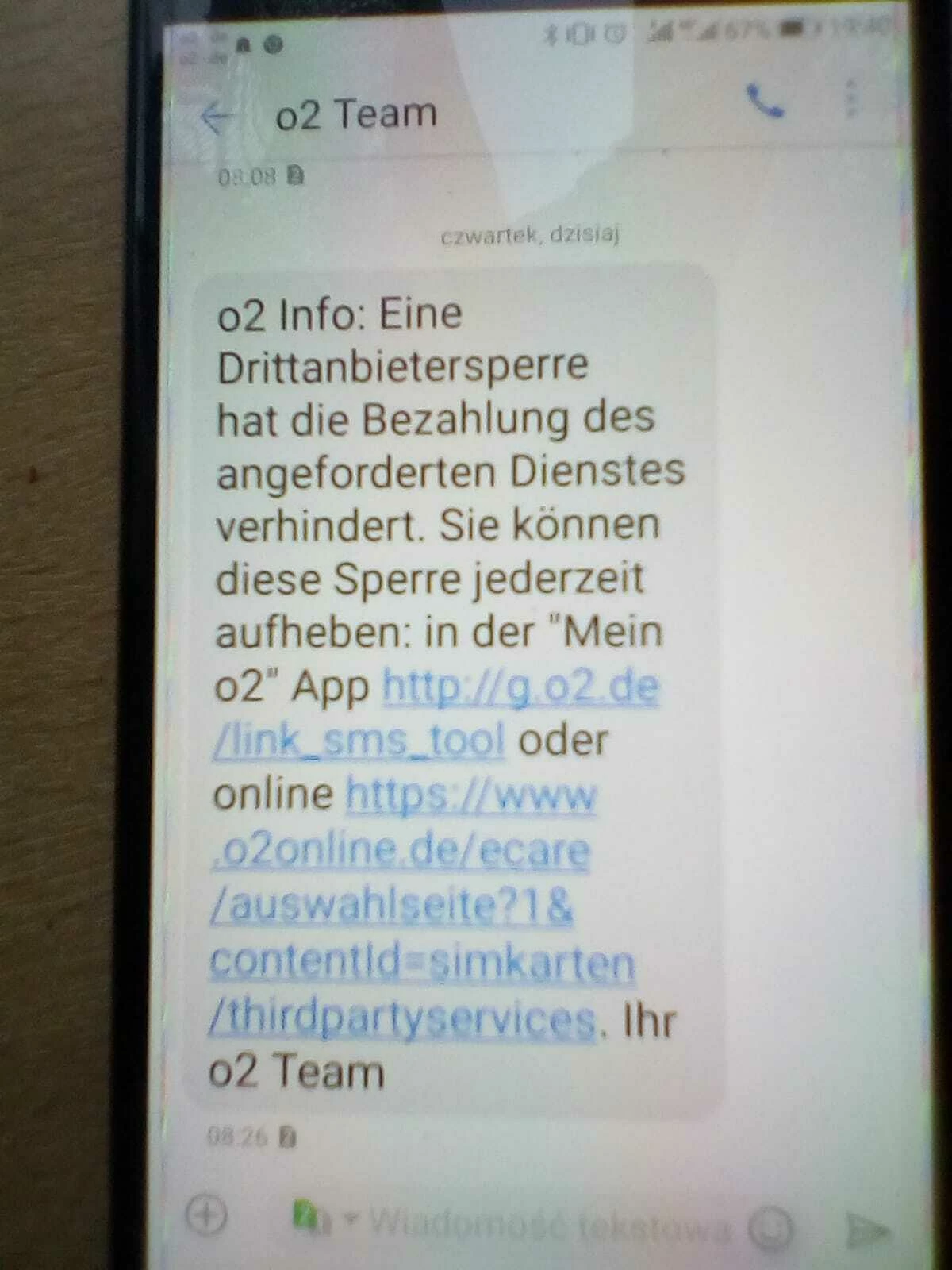 Danke , ich bekomme ständig sms von o2 finde ich langsam störend ich Habe kein Abo abgeschlossen nicht unter geladen Geld wurde mir abgebucht und jetzt Versuch o2 mich zwingen Sperre aufzuheben