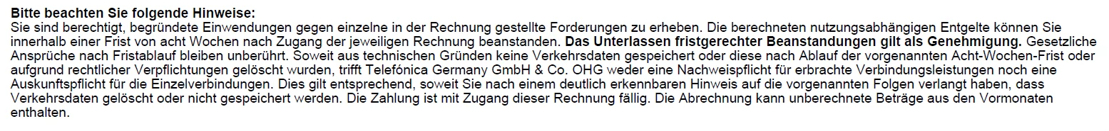 Ich widerspreche hiermit dem Einzug von 7,99 € monatlich für den unaufgefordert einseitig von Telefonica gebuchten Mehrwertdienst „o2 Unlimited Games“ ab dem Rechnungszeitraum 05.10.2017.