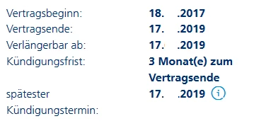 Warum steht bei O2 Online spätester Kündigungstermin:xx.xx.2019 obwohl Vertrag bereits zum 04/2018 gekündigt wurde? Ausserdem vermisse ich bei o2Online einen Punkt Ende des Vertrages: xx.xx.xxxx