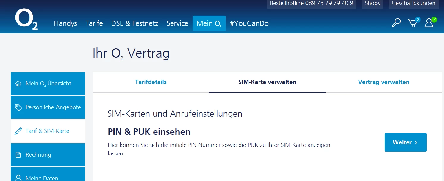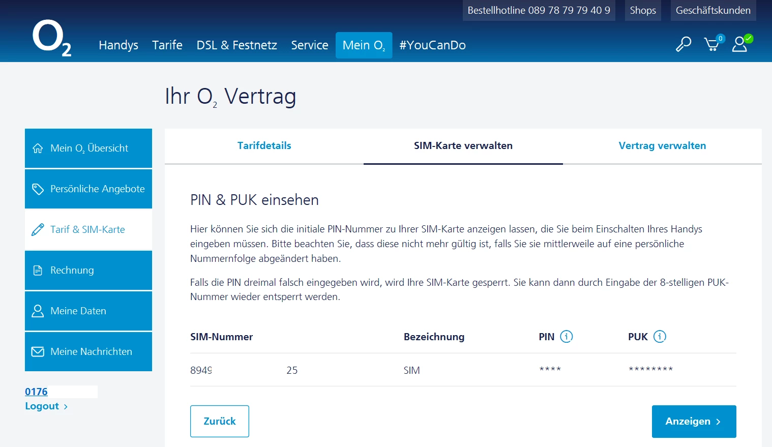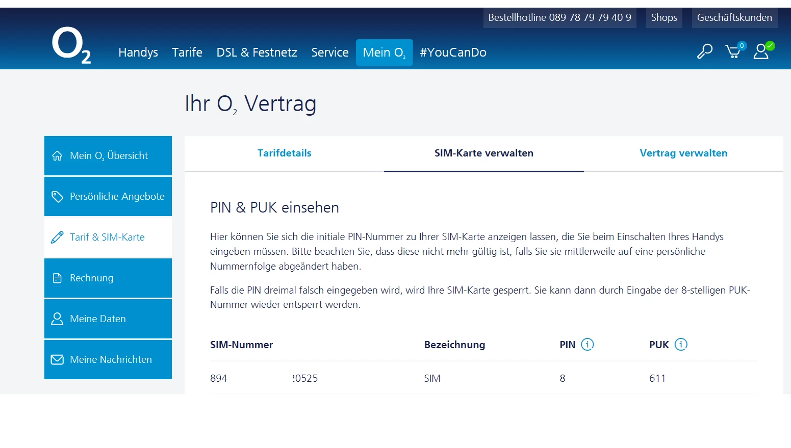 Unter "Mein o2" bei der SIM Kartenverwaltung werden dir PIN und PUK nicht angezeigt?