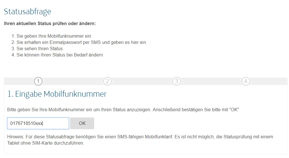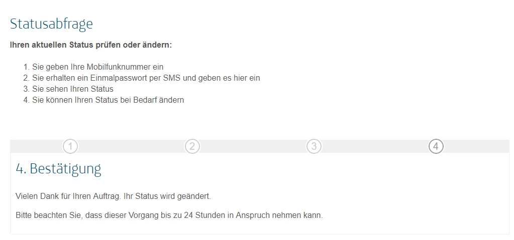 Wenn du keine SMS schicken willst kannst du übrigens auch hier widerrufen: