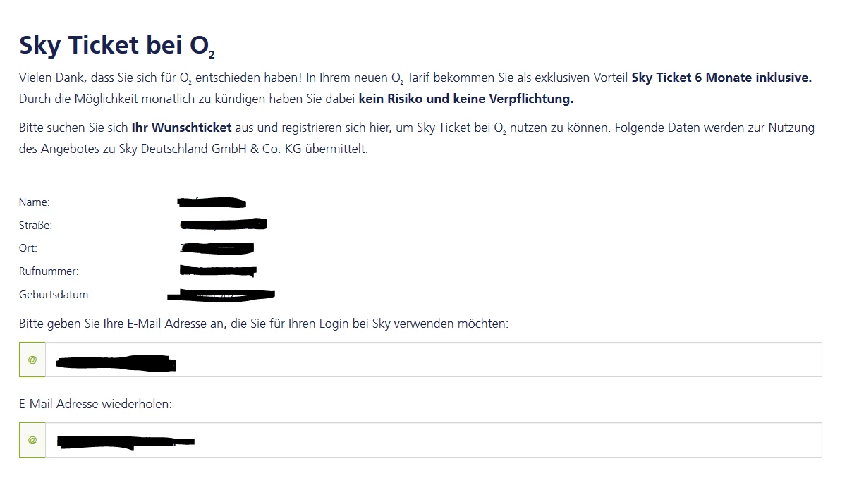 Konntest du hier Sky Ticket bei o2 neben der Auswahl des Wunschticket auch eine Mail-Adresse angeben, mit der du dich bei Sky Ticket zukünftig anmelden möchtest?