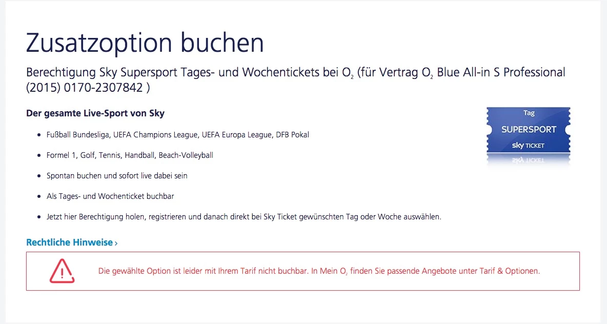 Warum kann ich kein Sky Sport Tagesticket buchen, welches mir als persönliches Angebot vorgeschlagen wird und für alle Kunden, auch Bestandskunden, zur Verfügung steht?