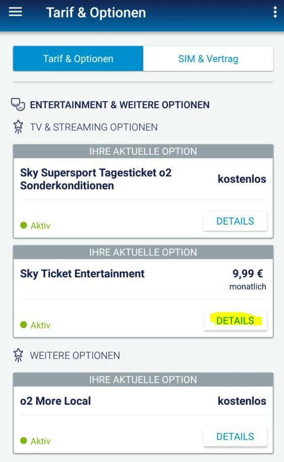 Oder in der "mein o2"-App unter "Tarif & Optionen - Details - weitere Optionen"