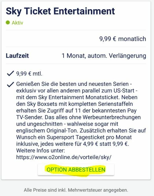 ich habe zur Vertragsverlängerung Sky Ticket dazu bekommen, an für sich coole Sache, aber ich sehe das Paket nicht im Bereich Entertainment. Läuft das von alleine ab? Oder müsst ihr das für mich beenden?