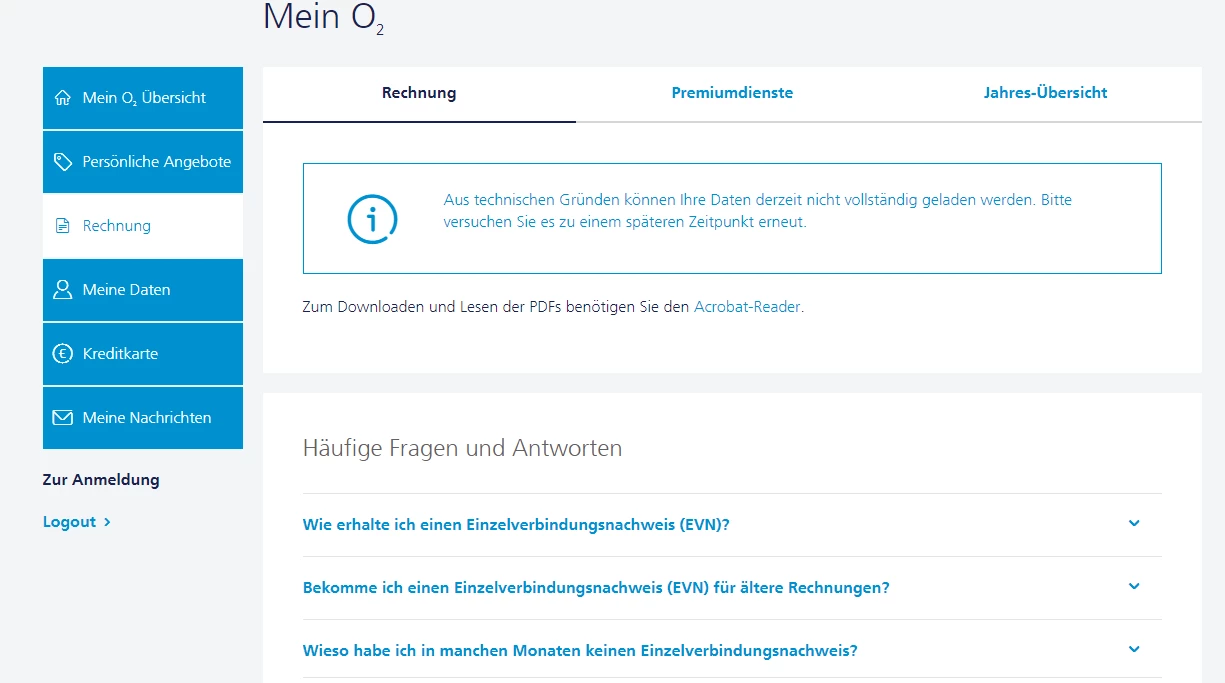 Technischer Fehler beim O2-Zugang