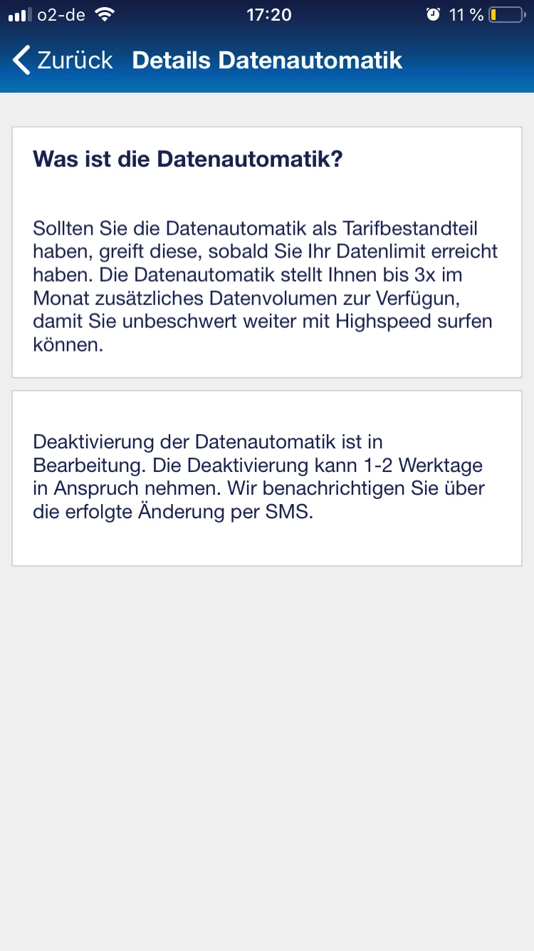 PS: ich bin es schon gewohnt, dass es bei mir und o2 nicht immer so klappt. Bei meinem 2. Vertrag ist zb. die Deaktivierung der Datenautomatik schon monatelang in Bearbeitung. Obwohl ich sie per App deaktiviert habe, musste ich letztens trotzdem bezahlen als ich einen automatischen ungewollten Snack erhielt. Lg