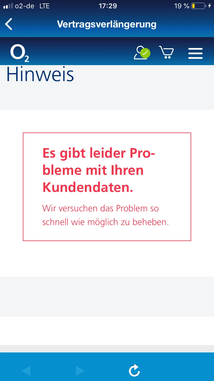 Sobald ich in der App auf Vertragsverlängerung gehe bekomme ich folgenden Fehler