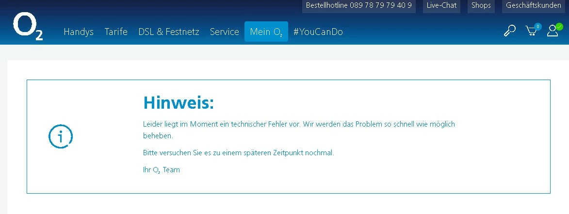 Seit ca.10 Tagen habe ich keinen Zugriff auf "Mein o2".