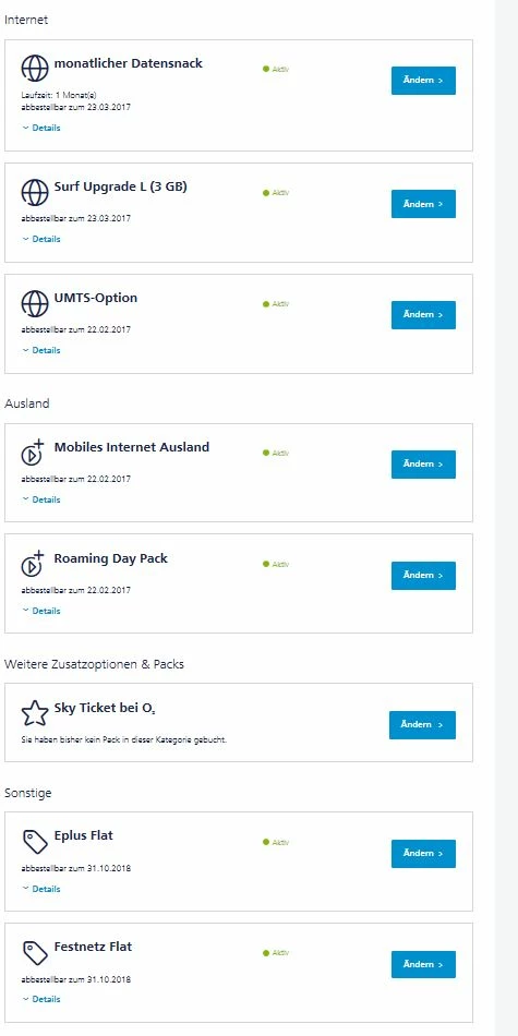 Wenn Sie irgendwas an dem Vertrag ändern, sind die Änderungen 2 Jahre aktiv, aber an der Laufzeit des Vertrages ändert sich nichts, so das plötzlich die ganzen Flats nicht mehr da waren, und jede Minute wurde extra berechnet, was horrende Rechnungen im Sommer 2016 verursacht hat.