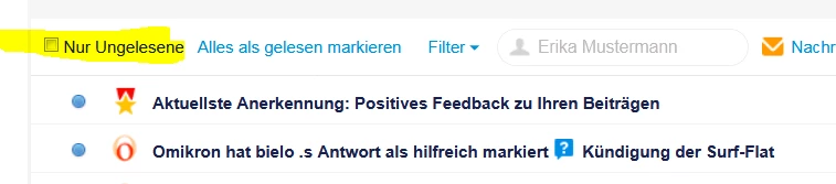 Weiß jemand wie man im Posteingang unter Community Nachrichten löschen kann?