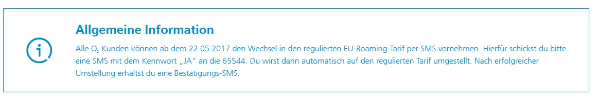 Zum Umstellen der Auslansoption einfach eine SMS senden: