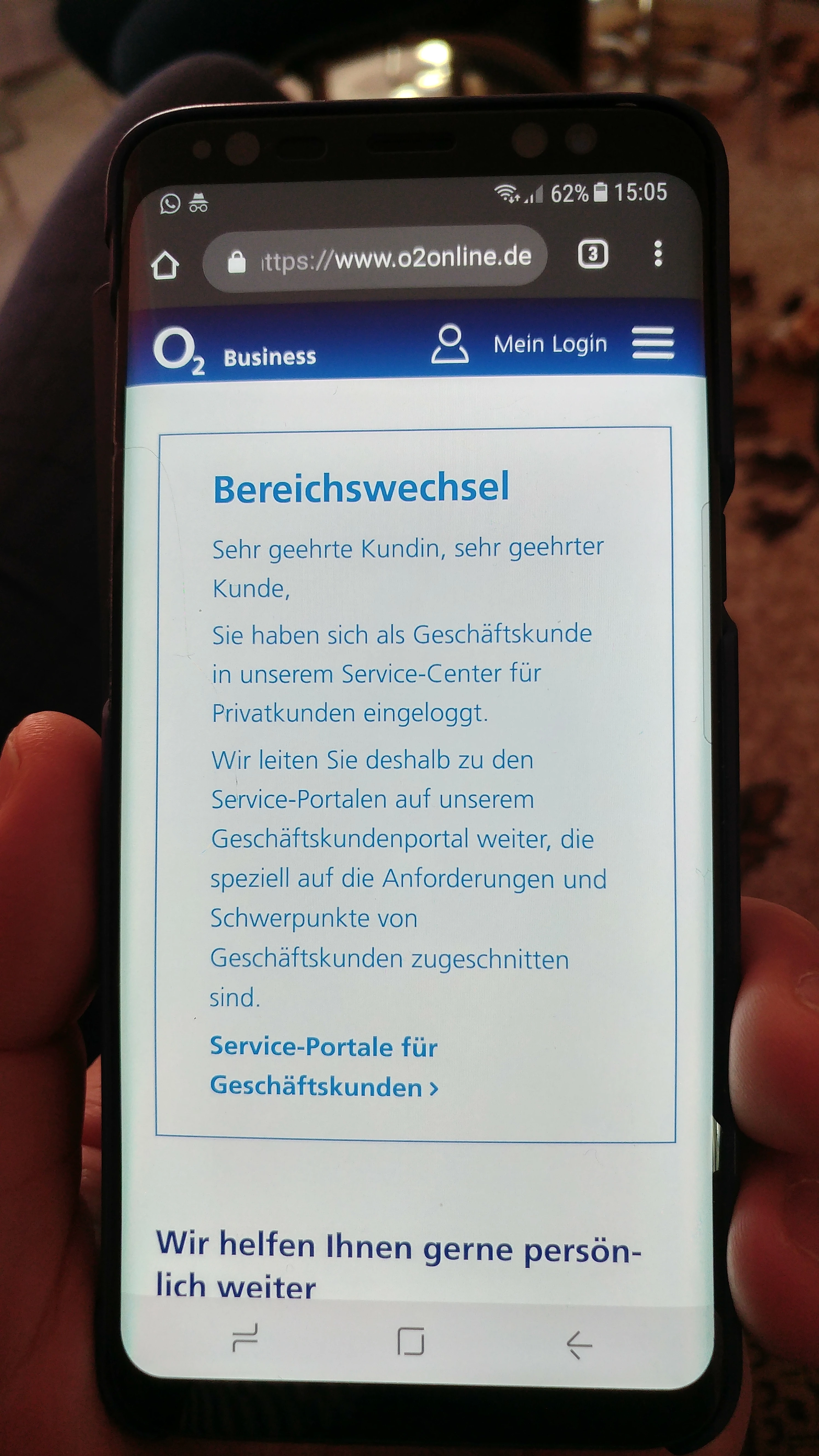 Aus Versehen habe ich mich auf dem O2 Portal als Geschäftskunde registriert.