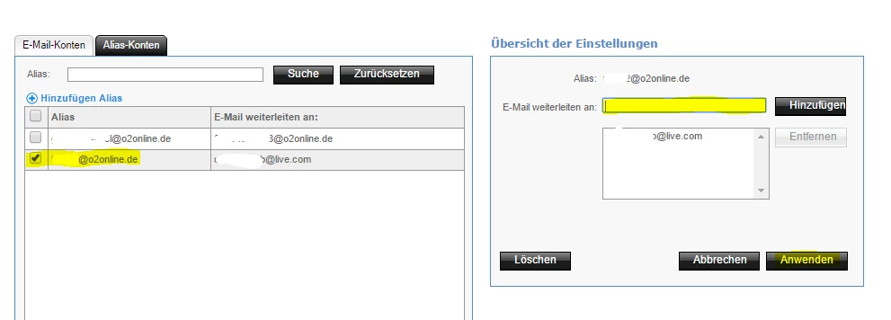 Nun möchte ich für eine einzelne Mobilfunknummer eine separate Email einrichten. ich habe den Alias in meinem Account schon gelöscht und eine eigene Anmeldung bei o2online gemacht.