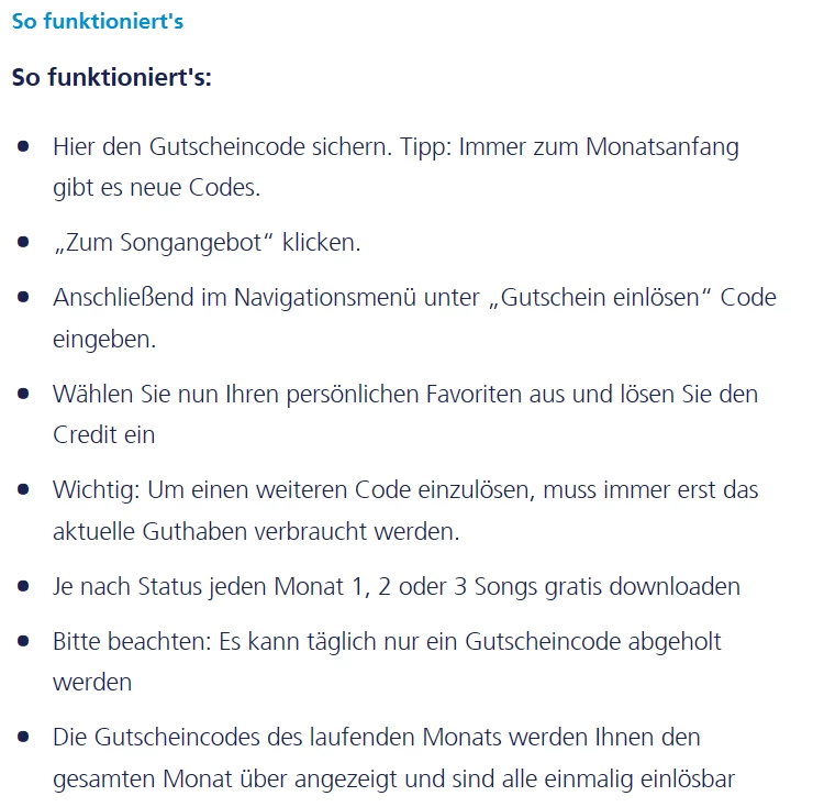 Ein gültiger Code für "Song-Download gratis" liegt vor. Wo kann der Code eingelöst werden? Danke. ☺️