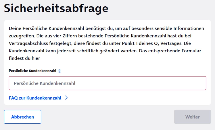 Die Basis hinter jedem O₂ Account ohne Vertrag oder Prepaidkarte, ist jeweils ein Mein O₂ Account, welchen wir Interessentenaccount nennen. Da es hier keine Vertragsbasis gibt, ist die Abfrage der persönlichen Kundenkennzahl fehl am Platz. An der Beseitigung des Fehlers wird bereits gearbeitet. 👍