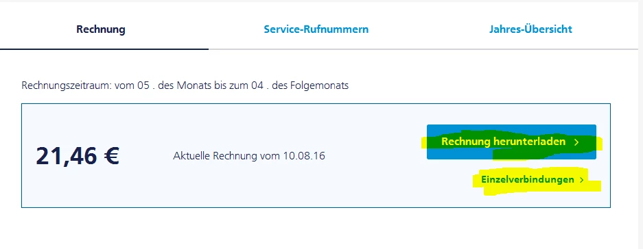 Ich habe den Link "Einzelverbindungen" nicht. Obwohl Einzelverbindungsnachweise aktiviert ist seit Beginn