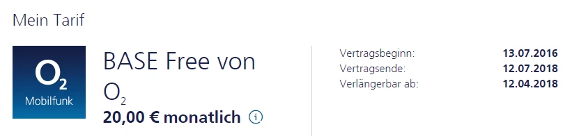 O2 hat Vertragsbeginn auf das Importdatum gesetzt und das Vertragsende ist wieder 24 Monate in der Zukunft, dabei wäre mein Vertragsende bei BASE schon Anfang 2017 gewesen.