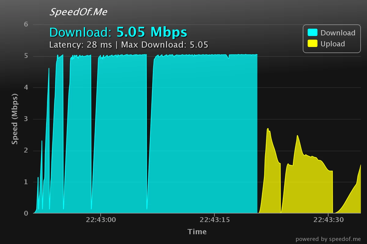 Downstream Bufferbloat is constantly around 50-60ms, which proves stable connection that can be increased.