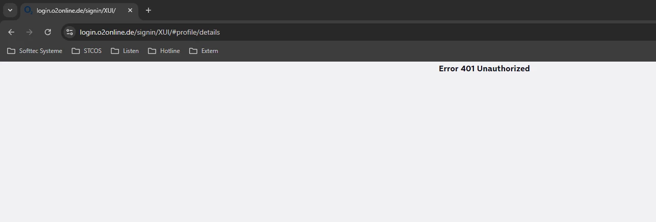 Sobald ich mich bei o2 anmelde kommt Error 401.