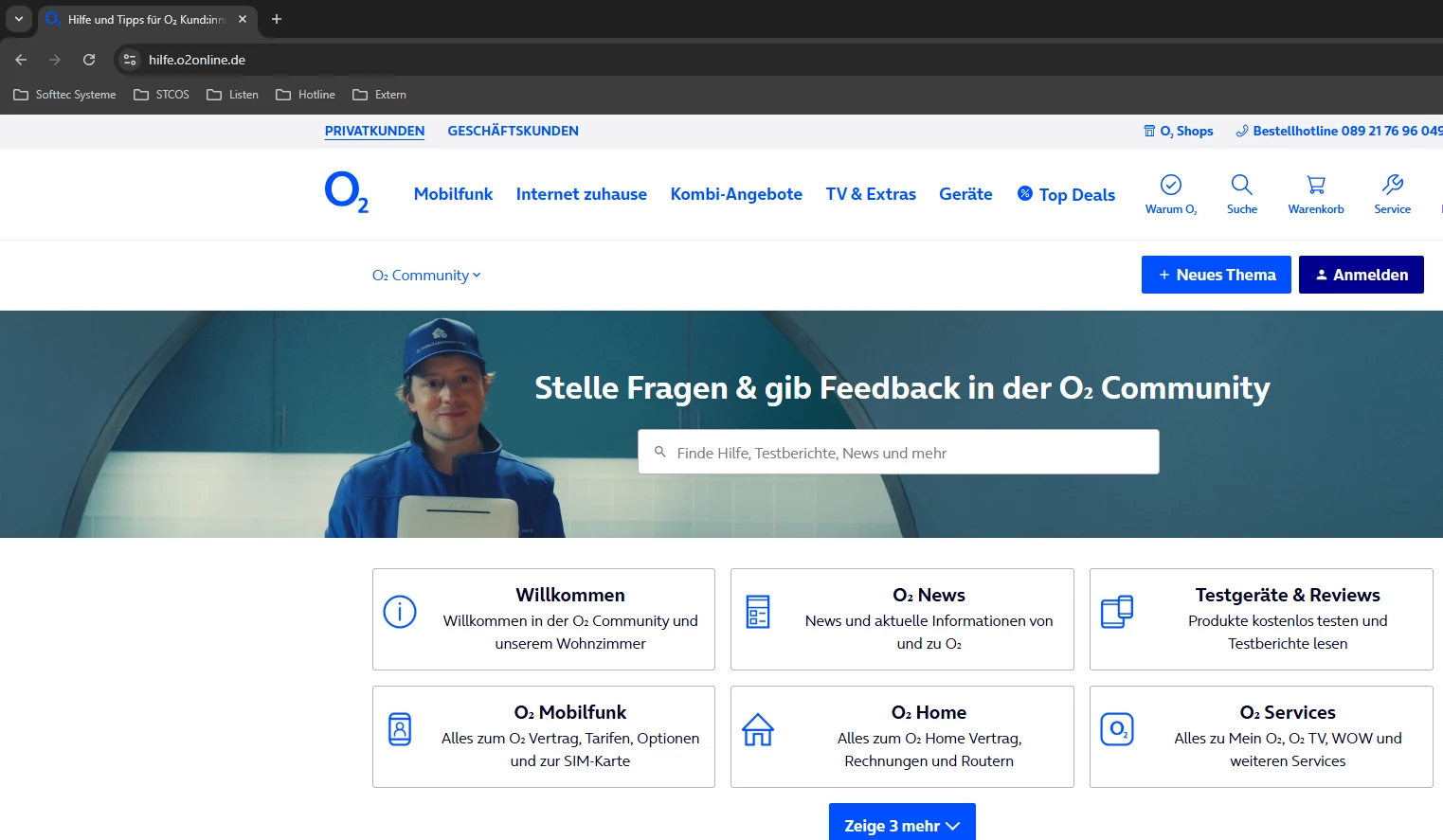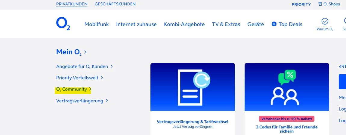 Über die normale o2 Seite, kann ich mich anmelden, wenn ich dann auf Community klicke, bin ich wieder siehe oben.