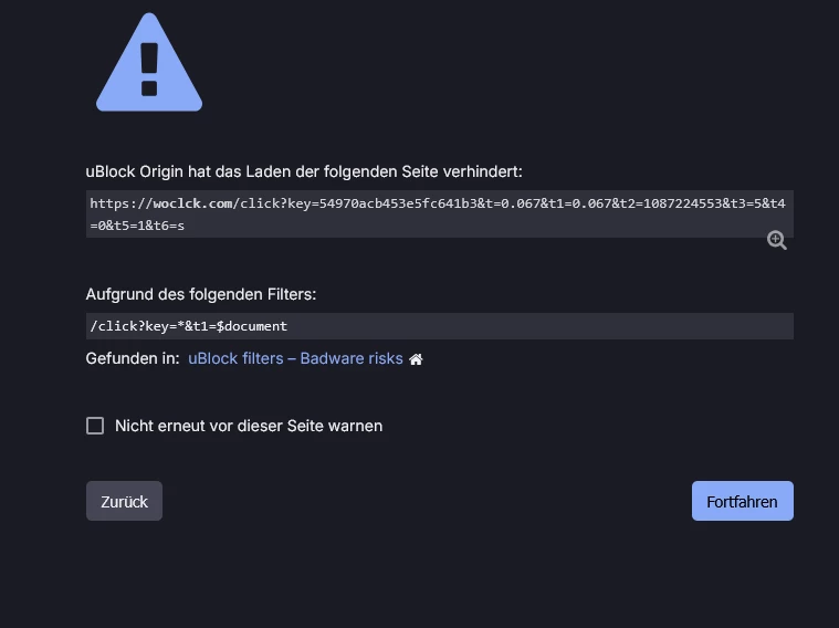 Wenn ich auf Fortfahren klicke, lande ich ganz woanders