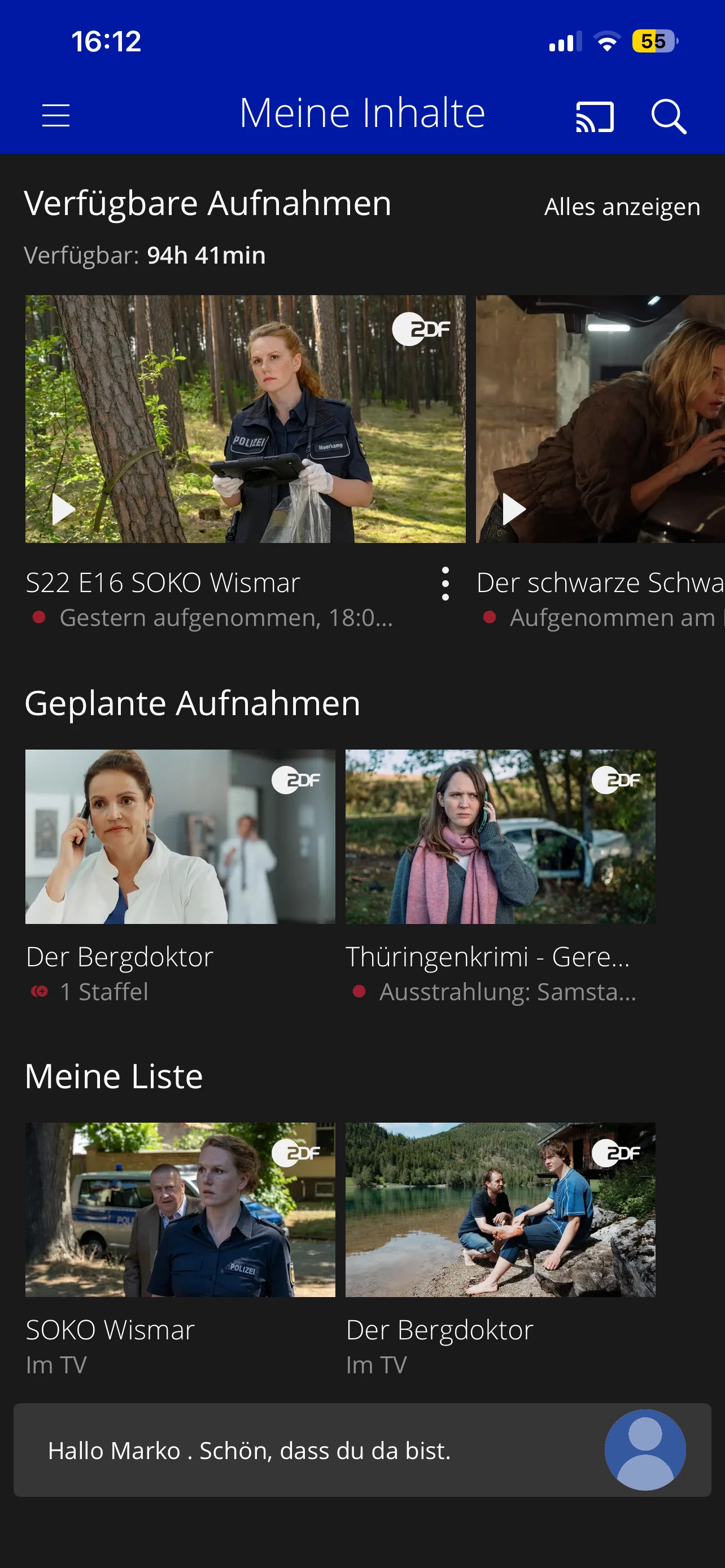 Soko ist schon aufgenommen und Bergdoktor und Tagesschau ist geplant! Da ist keine Unterteilung und abspielen des aufgenommenen klappt auch nicht