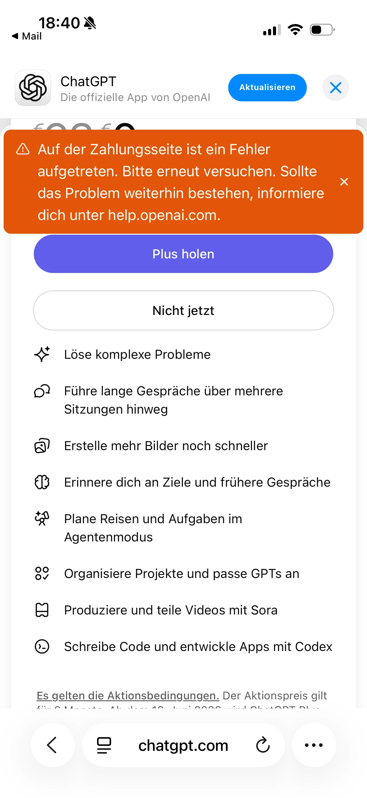 chat GBT plus code funktioniert nicht