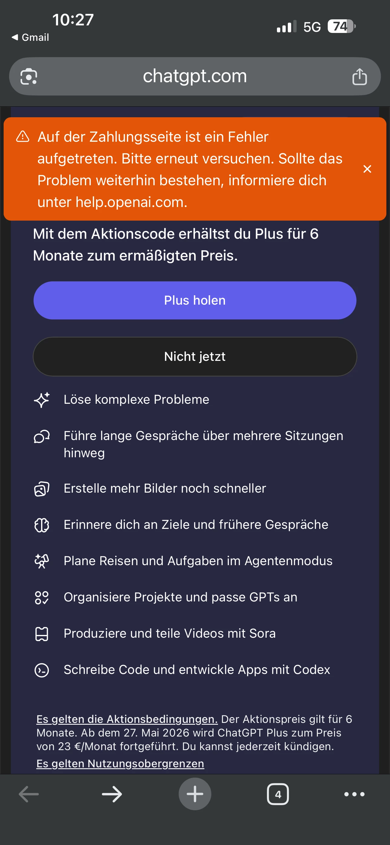 auch für euch haben wir eine Meldung weitergeleitet, dass ihr mit dem erhaltenen Code kein Chat GPT 6 Monate Gratis einlösen könnt 🙂