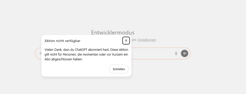 ChatGPT Promocode Fehler