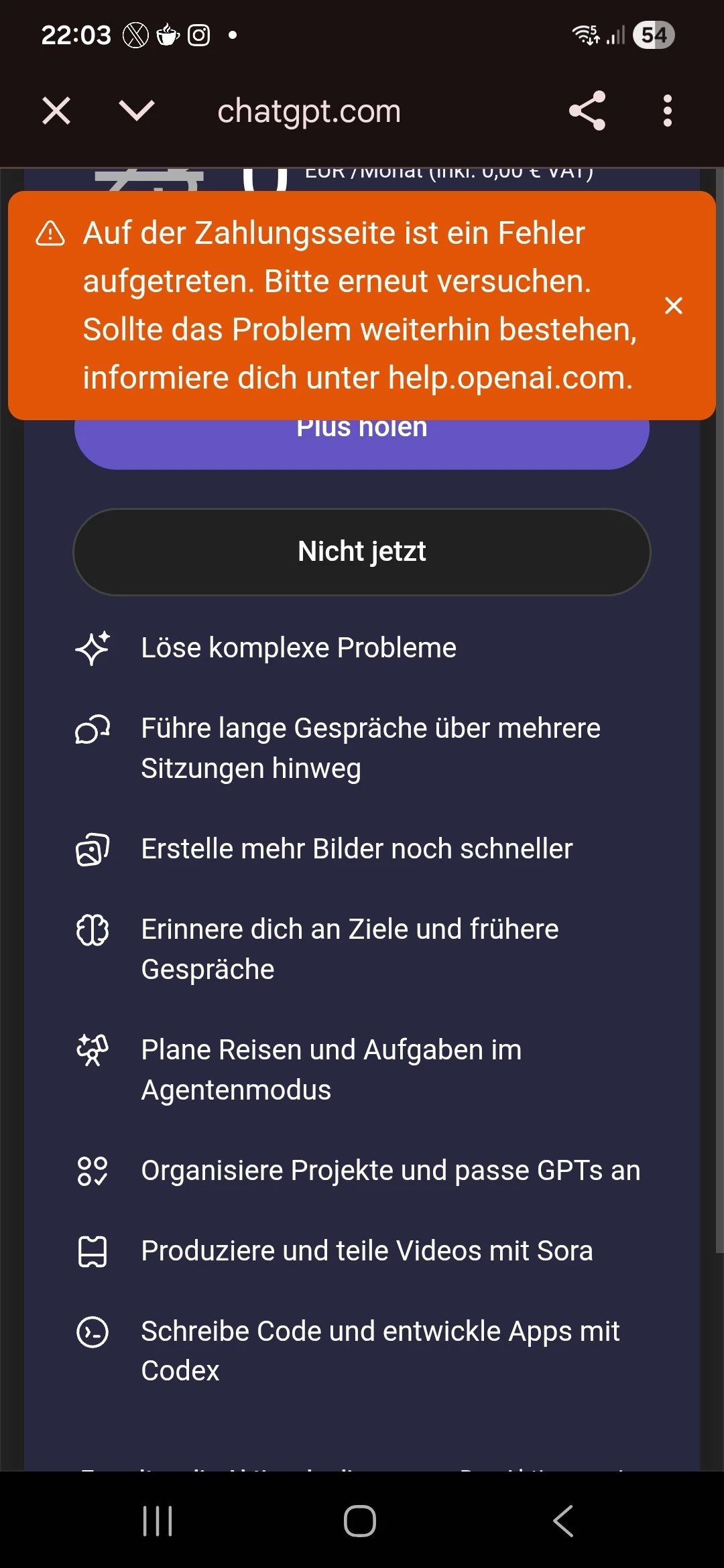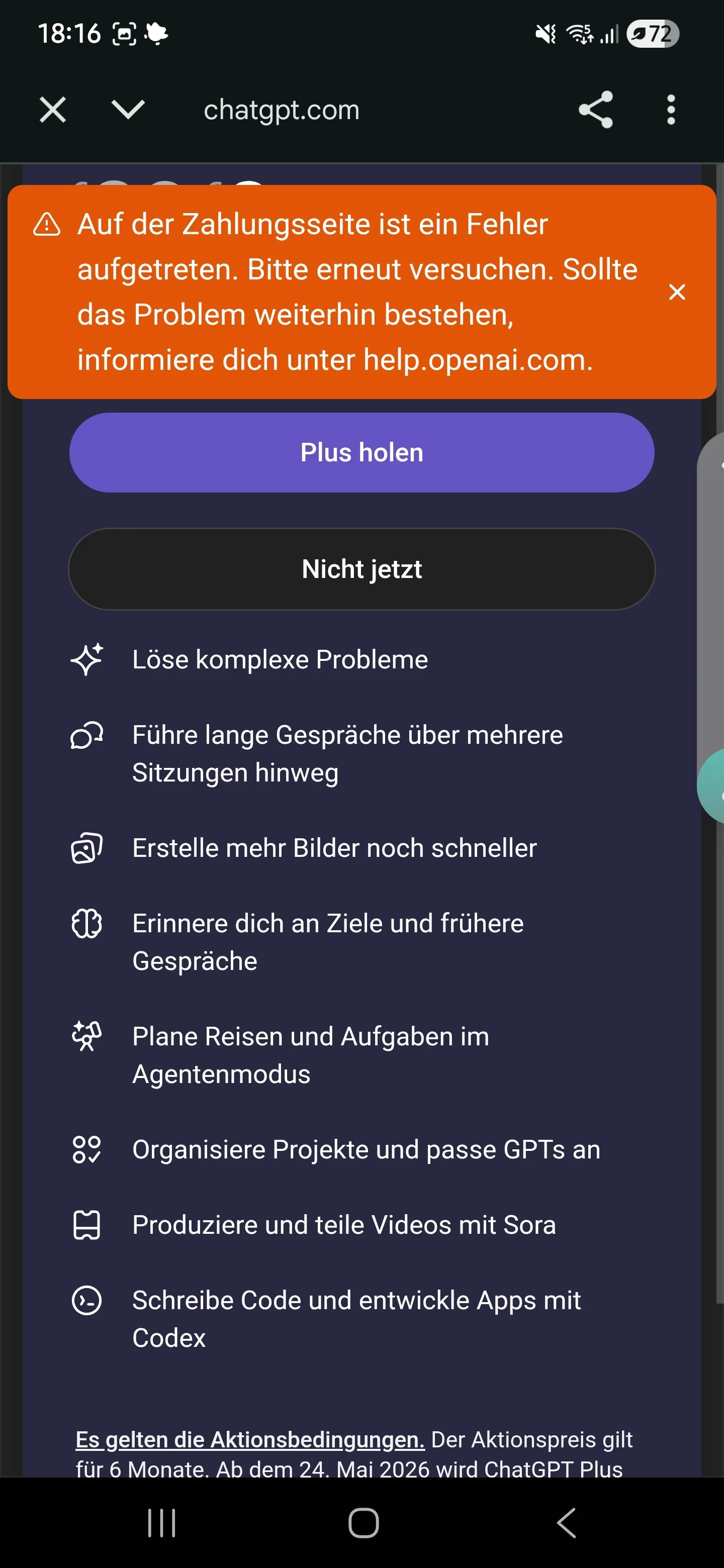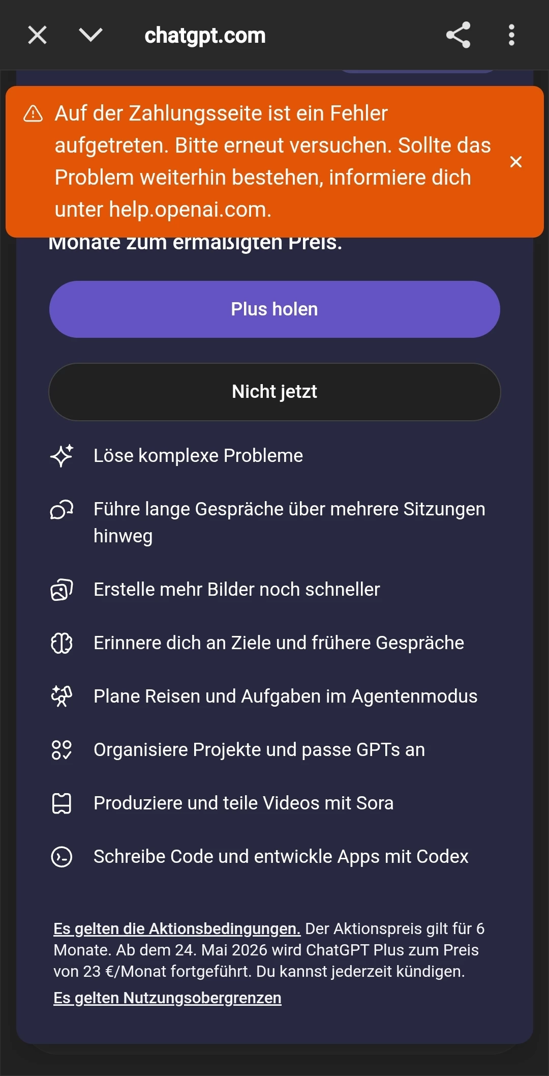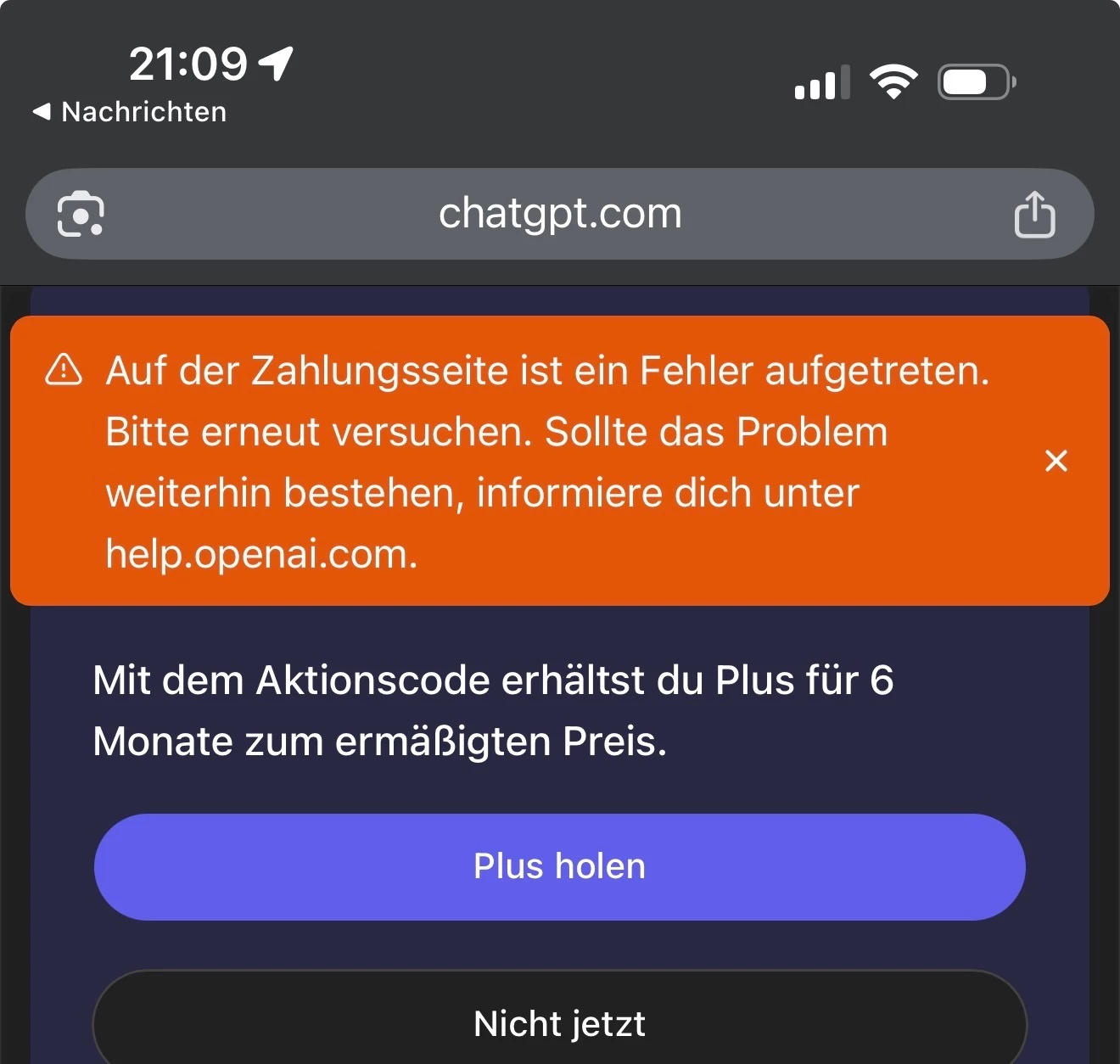 ChatGPT Promocode Fehler