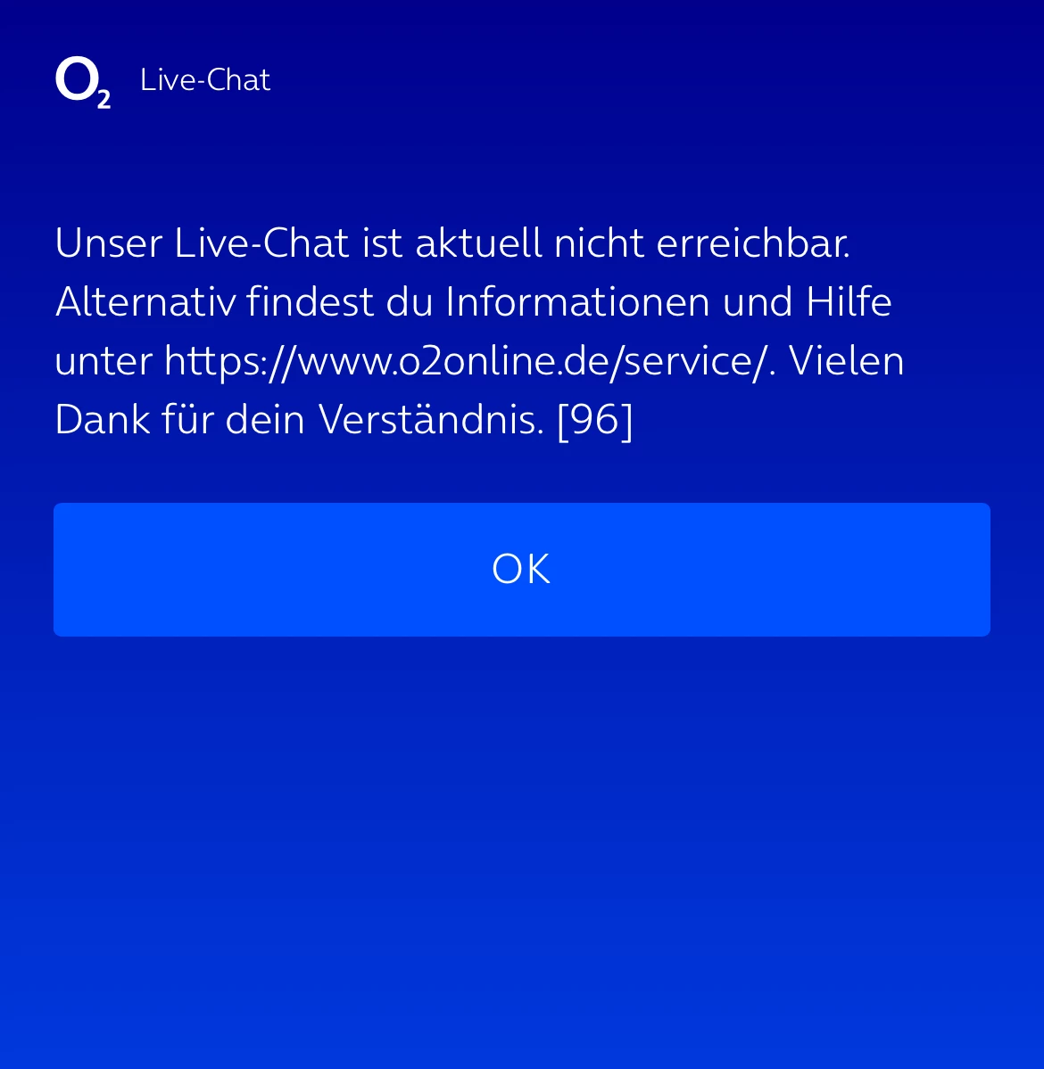 für mich ist es nicht zumutbar, dauerhaft darauf zu warten, wann O₂ erreichbar ist oder fortlaufend prüfen zu müssen, ob und wann sich O₂ meinem Anliegen überhaupt annimmt.
