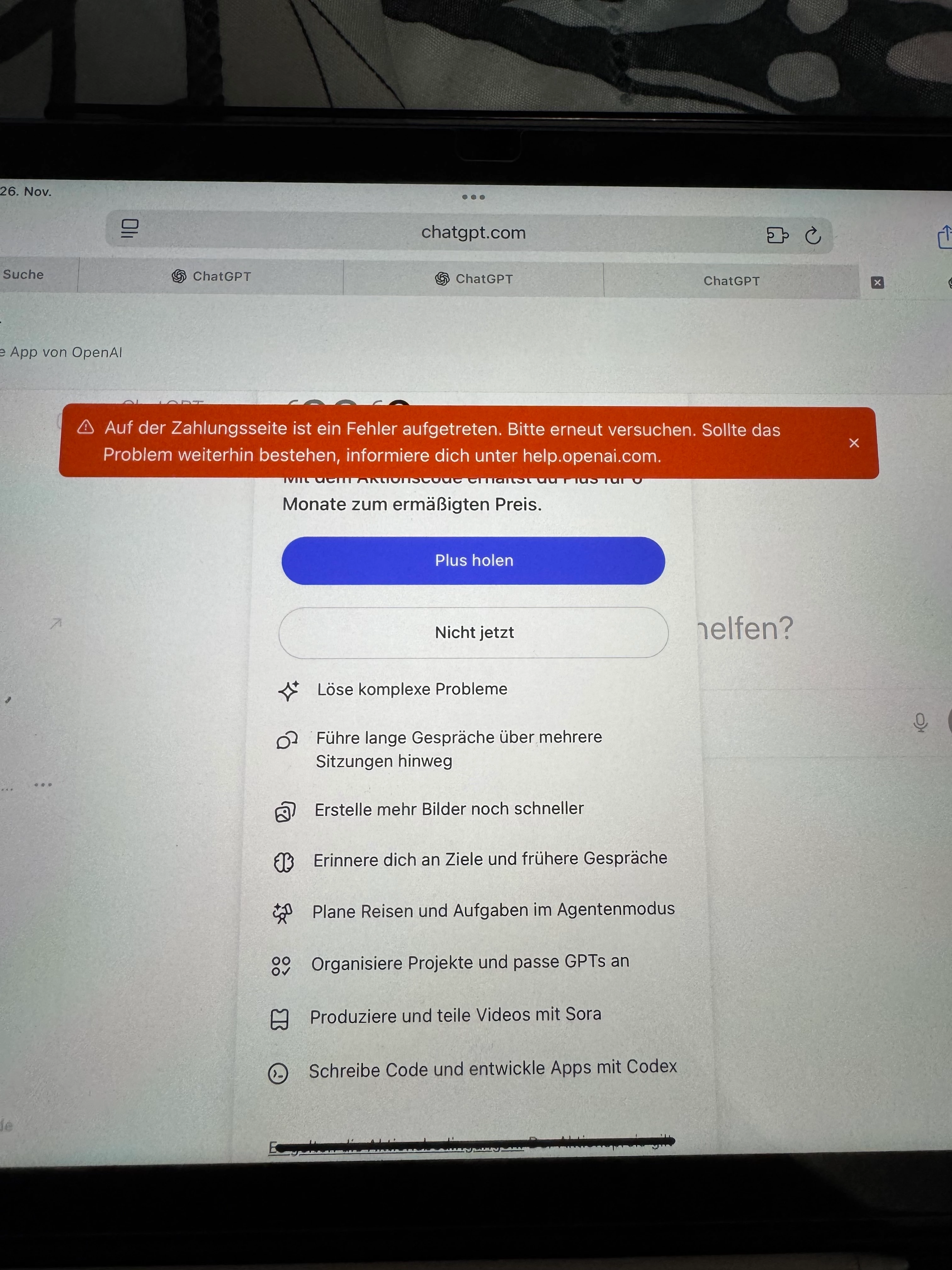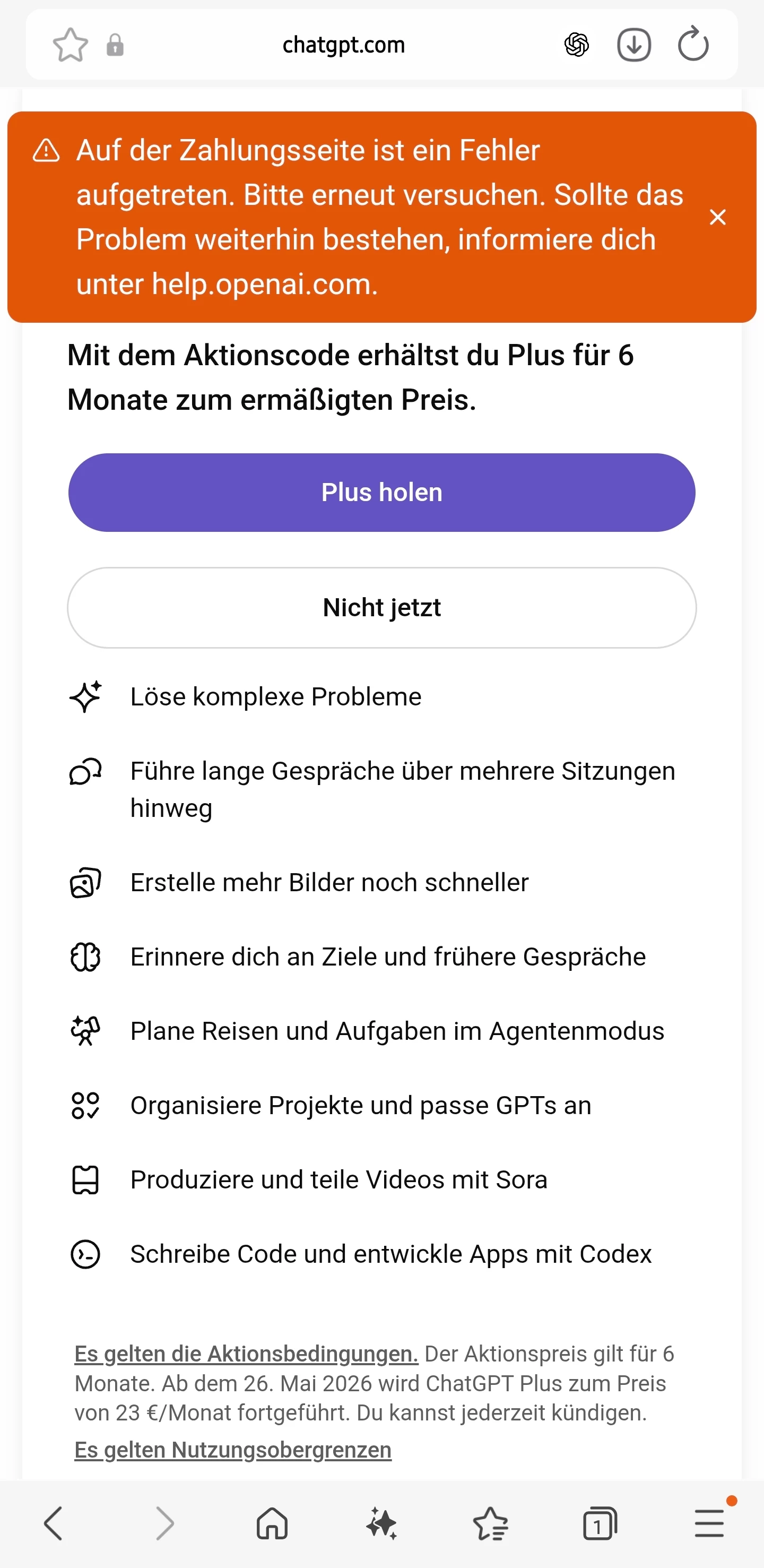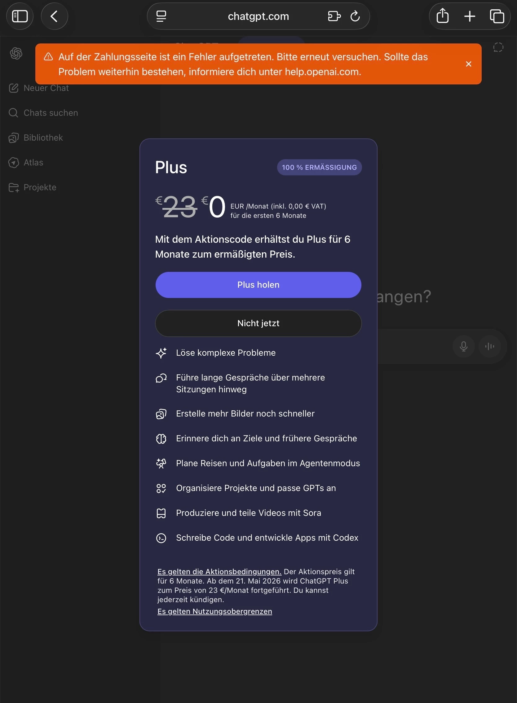 ChatGPT Promocode Fehler