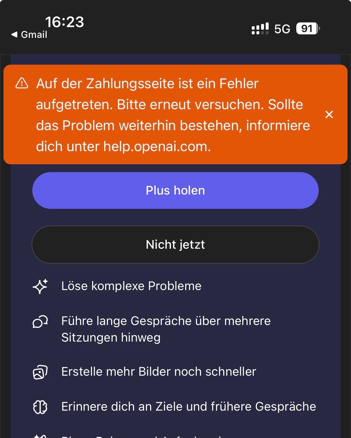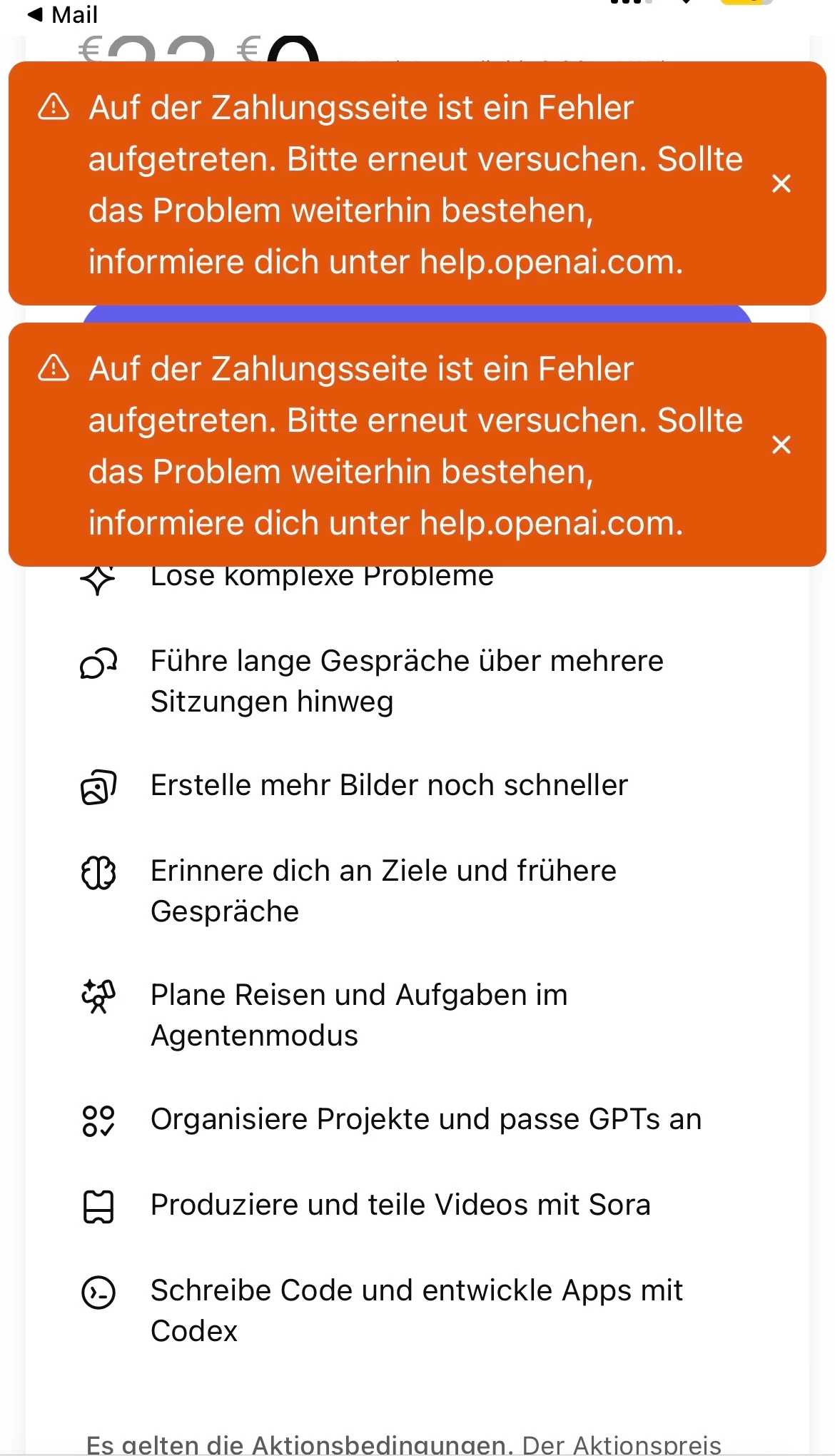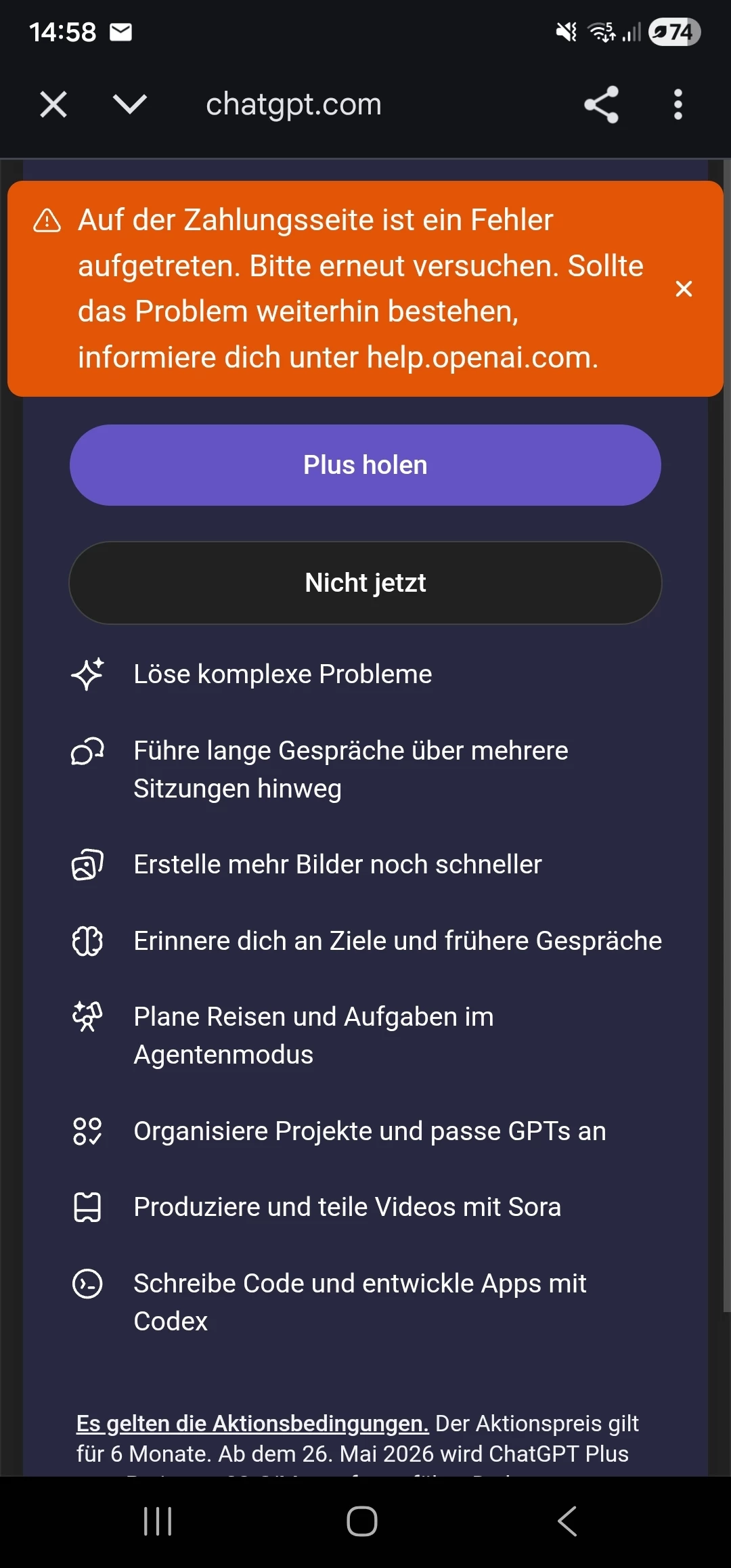 ChatGPT Promocode Fehler