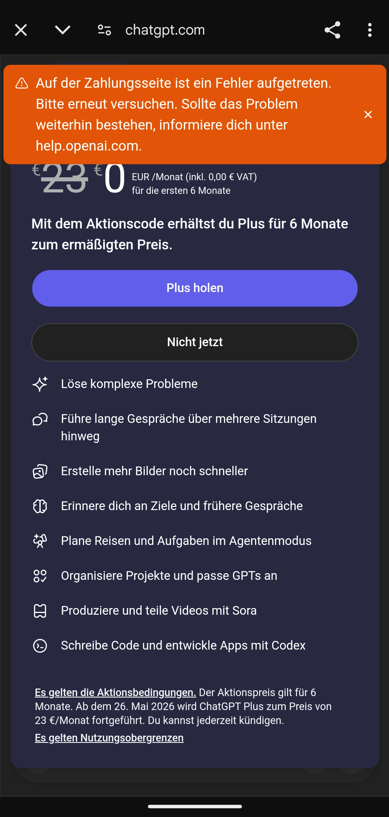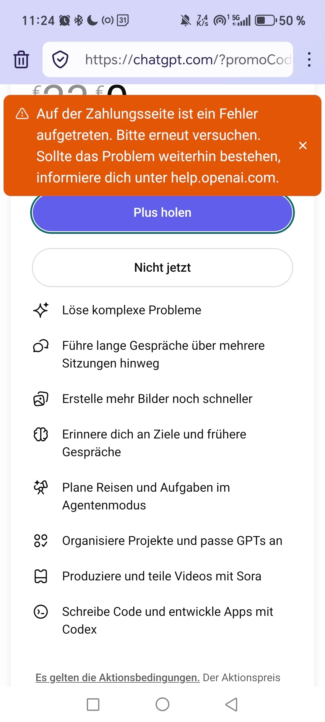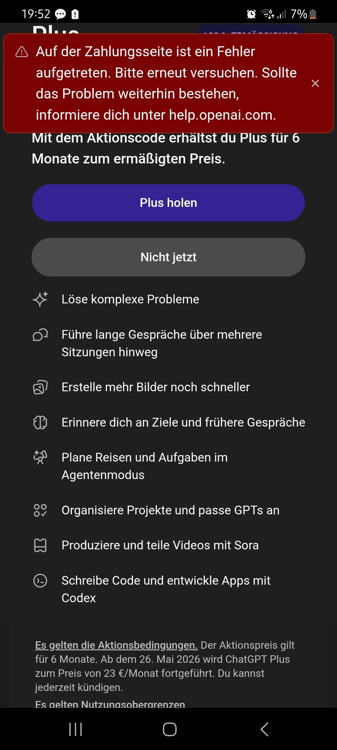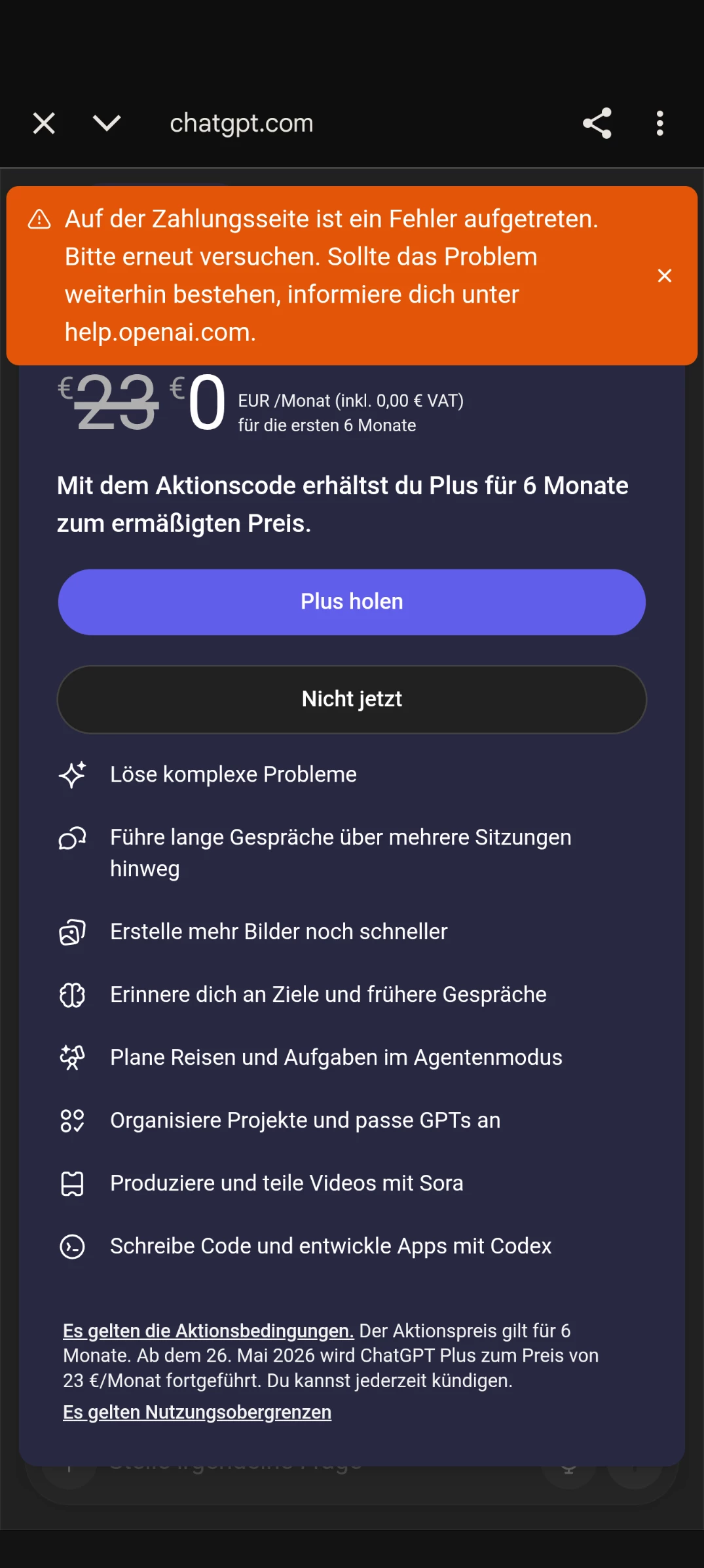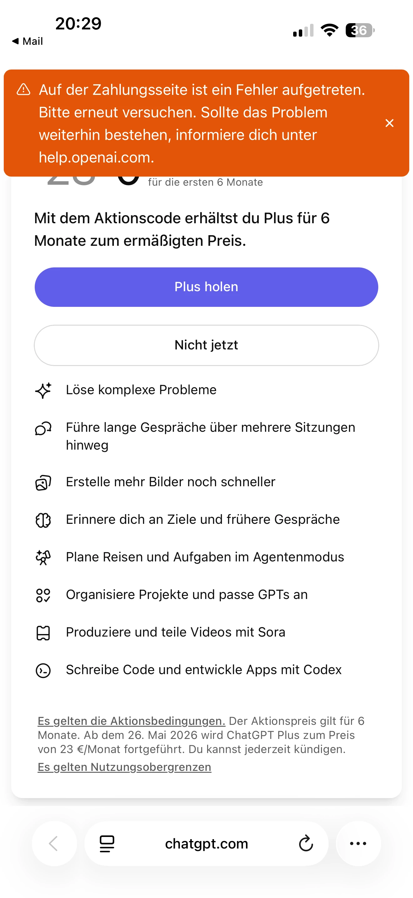 Ich benötige auch noch einen neuen Link für ChatGPT, da ich den gleich Fehler mit der Zahlung habe.