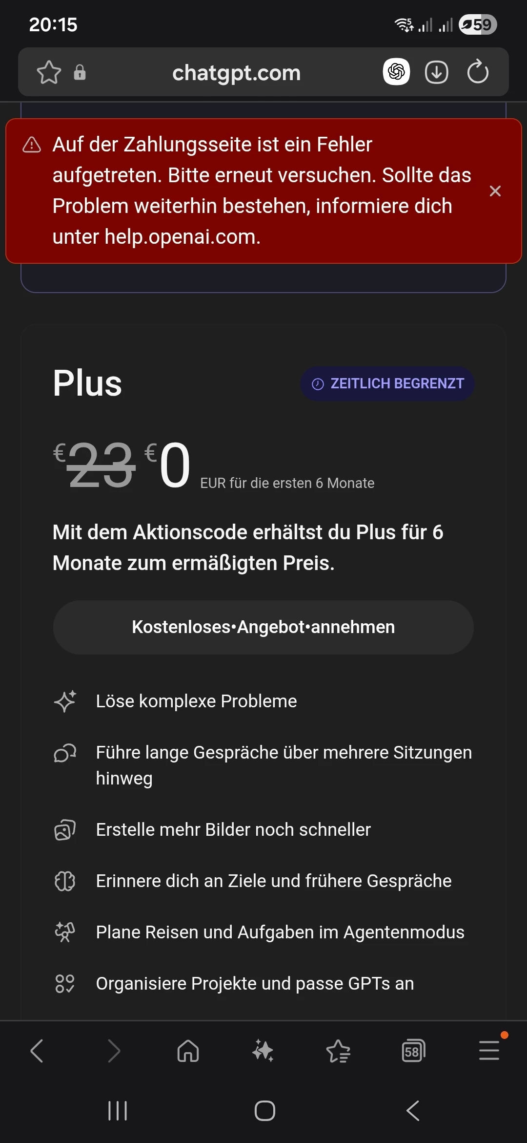 chatgpt promocode fehler neujahr2026