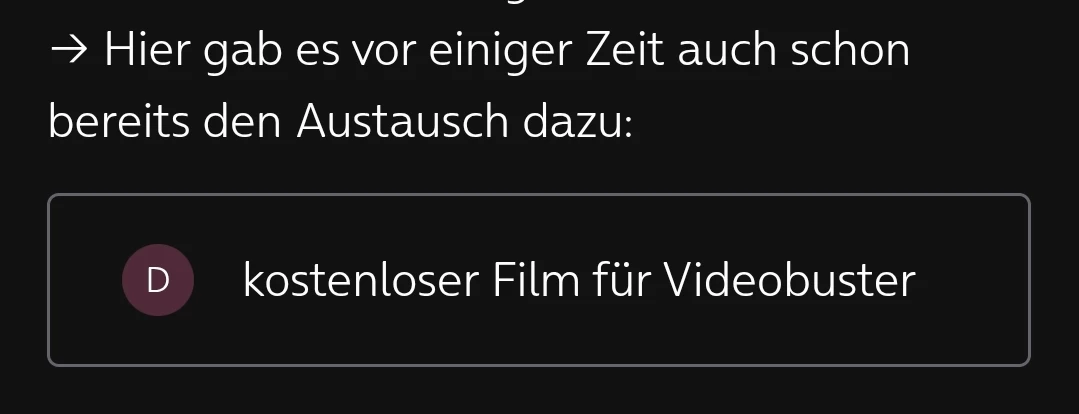 Hallo Rebecca, es kann doch nicht sein, dass man in seinem Vertrag die Option stehen hat, JEDEN Monat einen Film im Wert von 5€ zu leihen und dann gilt aber das Prinzip „wer zuerst kommt mahlt zuerst“. Wenn man zu langsam ist, erhalt man also nicht die monatliche Leistung, die im Vertrag steht. Davon steht in der Option nichts und hört sich meiner Meinung nach auch einer Unverschämtheit an. Da habe ich von O2 mehr erwartet. Ich werde meine entsprechenden Konsequenzen aus einer solchen Praxis ziehen.