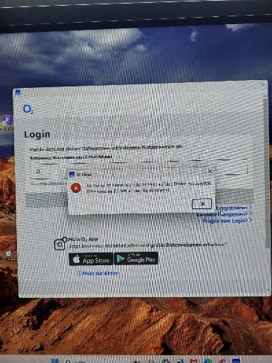Fehler tritt sowohl bei Anmeldung über o2 login als auch bei Anmeldung über einen Inkognitotab auf, wobei beim Inkognitoptab zumindest vor der Fehlermeldung noch der Bestätigungscode aufs Handy zum verifizieren geschickt wird.