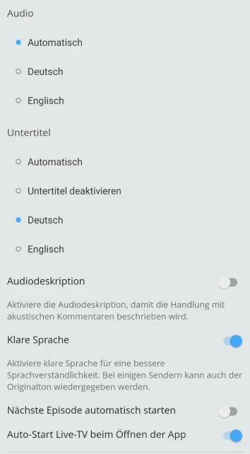Auch hier gibt es reichlich Verbesserungsbedarf, die Probleme sind schwierig im Detail zu beschreiben, es ist einfach “hakelig”, einschließlich der “Fortfahren/Zurück” Warnung. Das hatte waipu wesentlich besser gelöst, einfach indem es diese Warnung gar nicht sofort gab, sondern erst nachdem man den Sender für mehrere Sekunden verlassen hatte.
