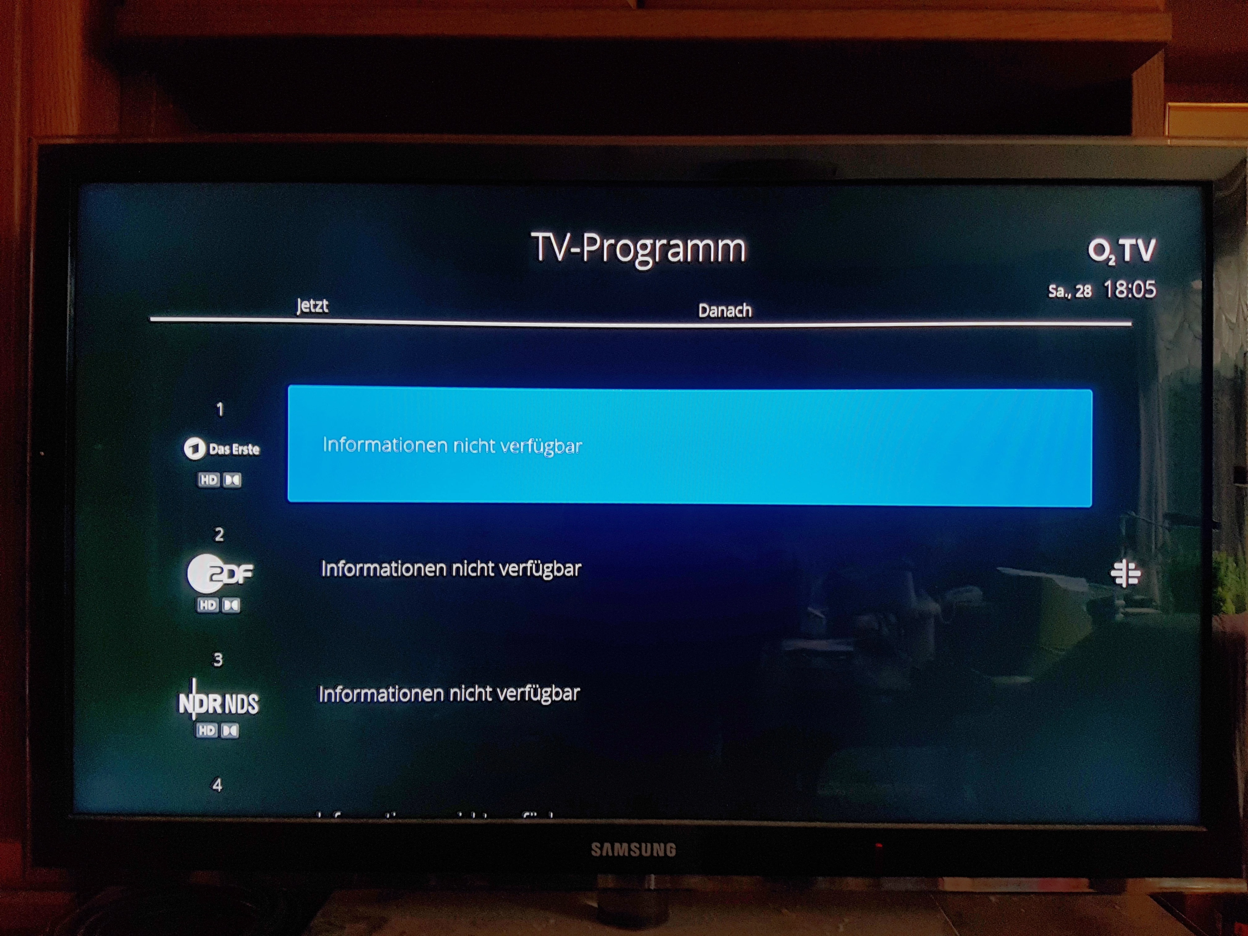 Und auch das EPG ist komplett leer. Auch nach 10 Minuten Wartezeit. Und der empfohlene Neustart des Routers hat natürlich auch überhaupt nichts geändert.
